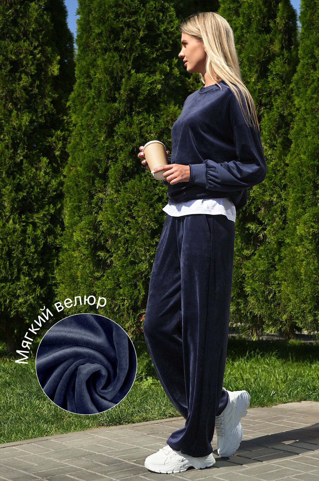 Повседневный велюровый костюм с брюками имеет свободный прямой крой и удобен для дома и прогулок. Бархатный костюм подойдет для путешествий и домашнего уюта. Синий костюм идеален для спорта, осенних и весенних образов.