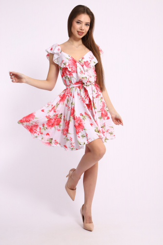 Платье без рукавов не только обеспечивает комфорт в теплую погоду, но и открывает безграничные возможности для создания стильных нарядов. Волан на полочке изделия добавляет динамичности и утончённости вашему образу, привлекая внимание и создавая изысканный силуэт. Юбка полусолнце известна своей универсальностью и способностью создавать эффектный и запоминающийся образ. Она не только скрывает недостатки фигуры, но и отлично подчеркивает достоинства. Отрезное по талии платье выгодно акцентирует внимание на вашем силуэте, выделяя талию и визуально удлиняя ноги.