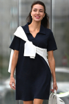 Рост модели 170 см, параметры: объем груди 88, объем талии 67, объем бедер 97. На ней размер 44-46.