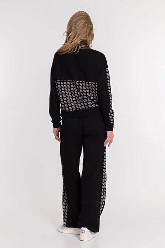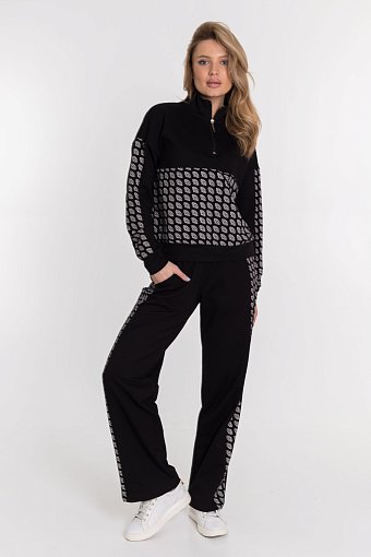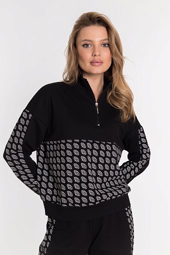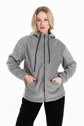 Спущенная пройма, рукав с отделочной полосой и притачной манжетой. Полочка и спинка с кокетками, воротник-стойка с застежкой на молнию, не доходящую до линии кокетки. Низ на манжете.