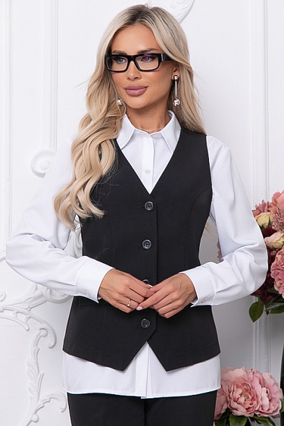 * Жилет  из костюмной ткани полуприлегающего силуэта  с центральной застежкой на пуговицы.