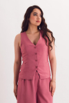 Описание: Романтичный жилет на тонких бретелях создает женственный силуэт "песочные часы". Глубокие складки спереди не сковывают движения при удлиненном крое.