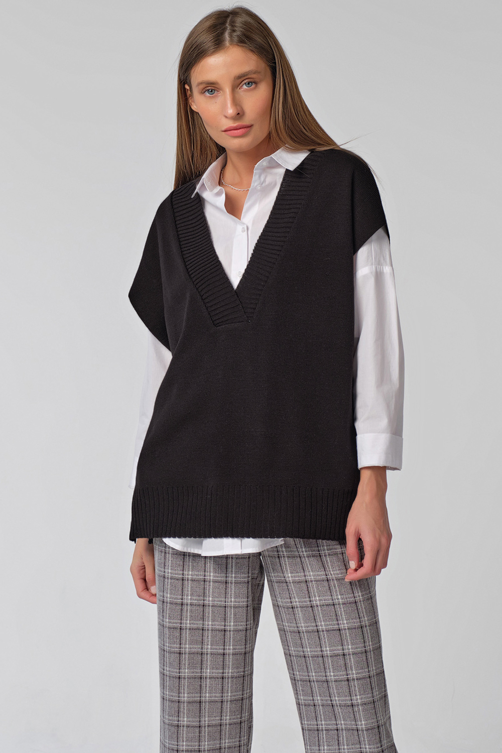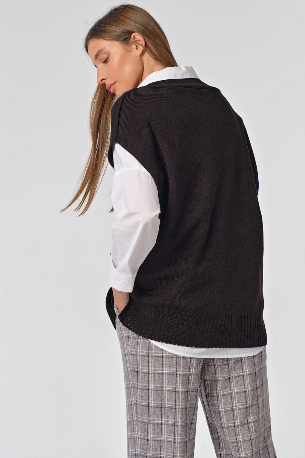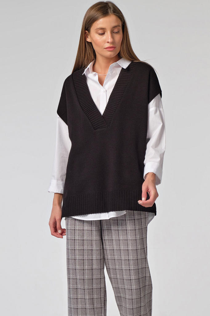 ст. цена1293руб.! Жилет вязаный оверсайз с разрезами по бокам черный