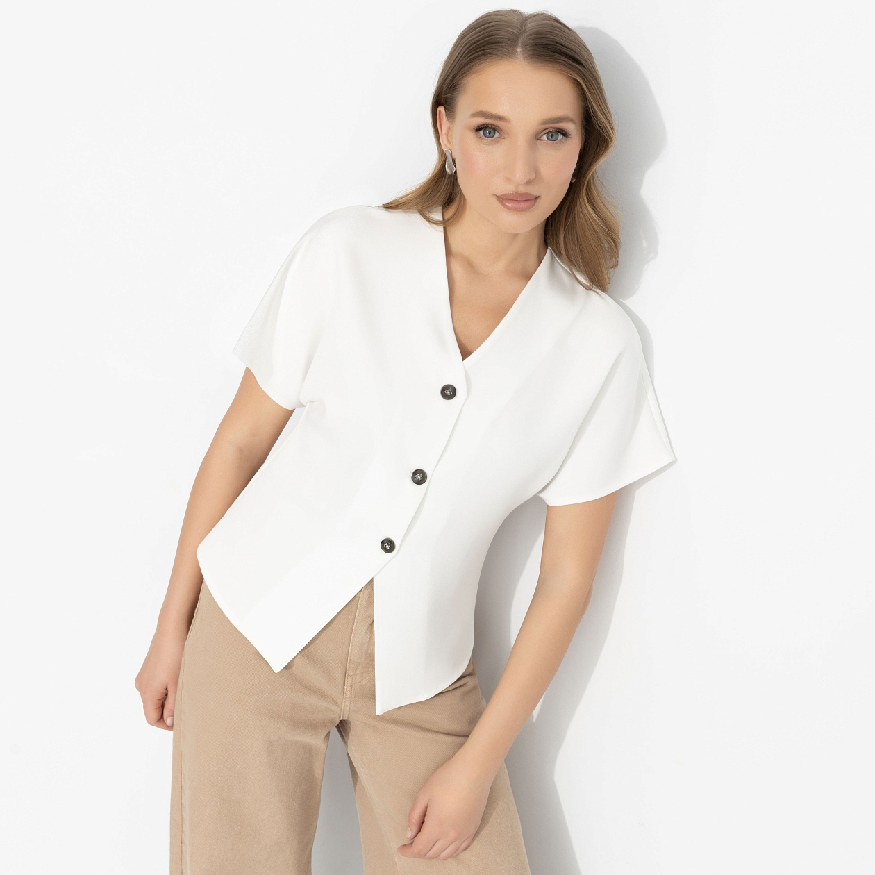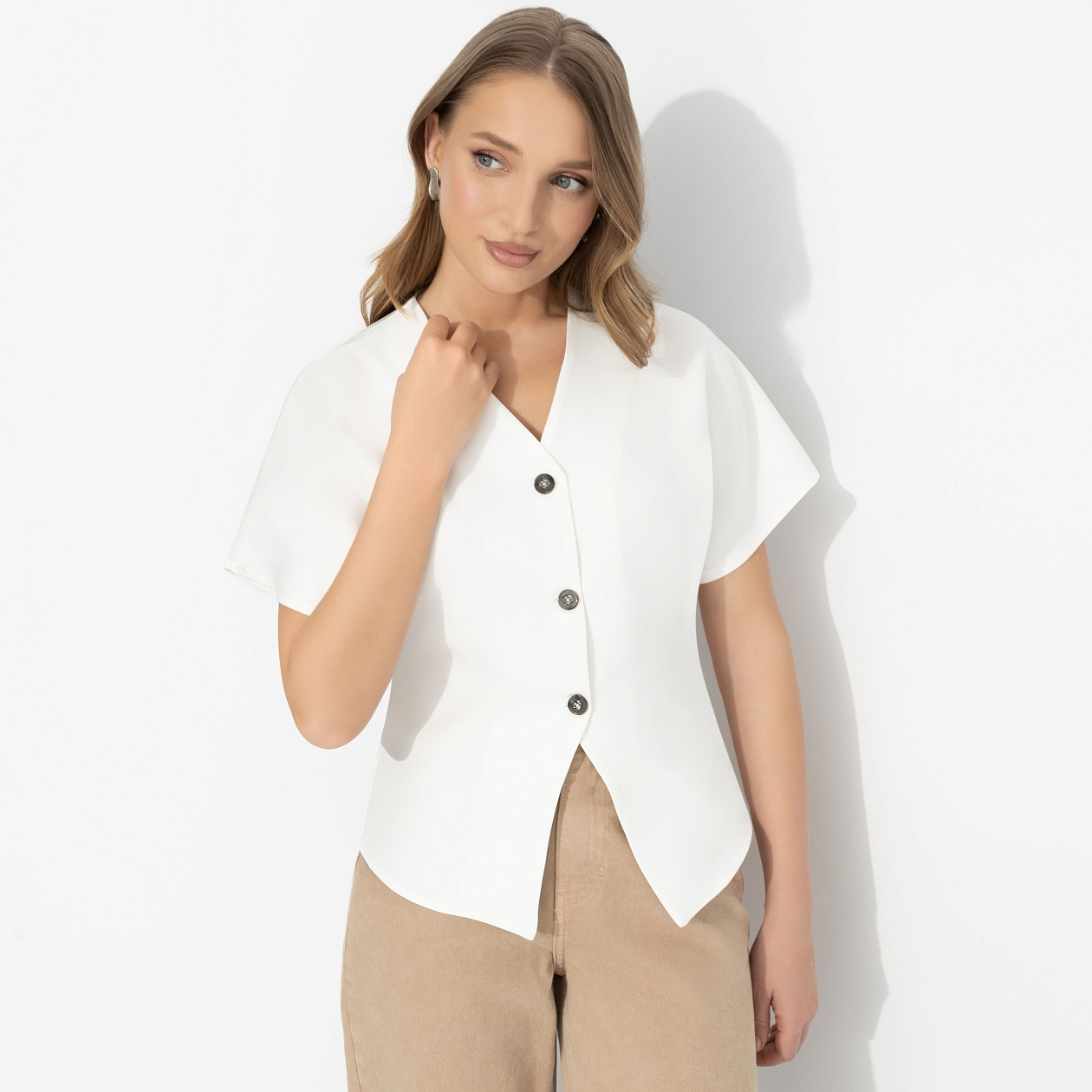 Она не оставляет никому запасных вариантов − потому что ценит уверенность и хочет быть на первом месте для тех, кем дорожит. Поэтому ее образ для работы − это чистый лист, ясная мысль и комфорт без лишнего шума. В духе героинь стильных минималистичных лукбуков из 90-х, где всё решает линия и подача. Лаконичный жилет из костюмной ткани создаёт чёткий, слегка приталенный силуэт. V-образный вырез и акцентные пуговицы визуально вытягивают фигуру. Носите соло или поверх топа/рубашки − с брюками, джинсами или юбкой для собранного и современного образа.