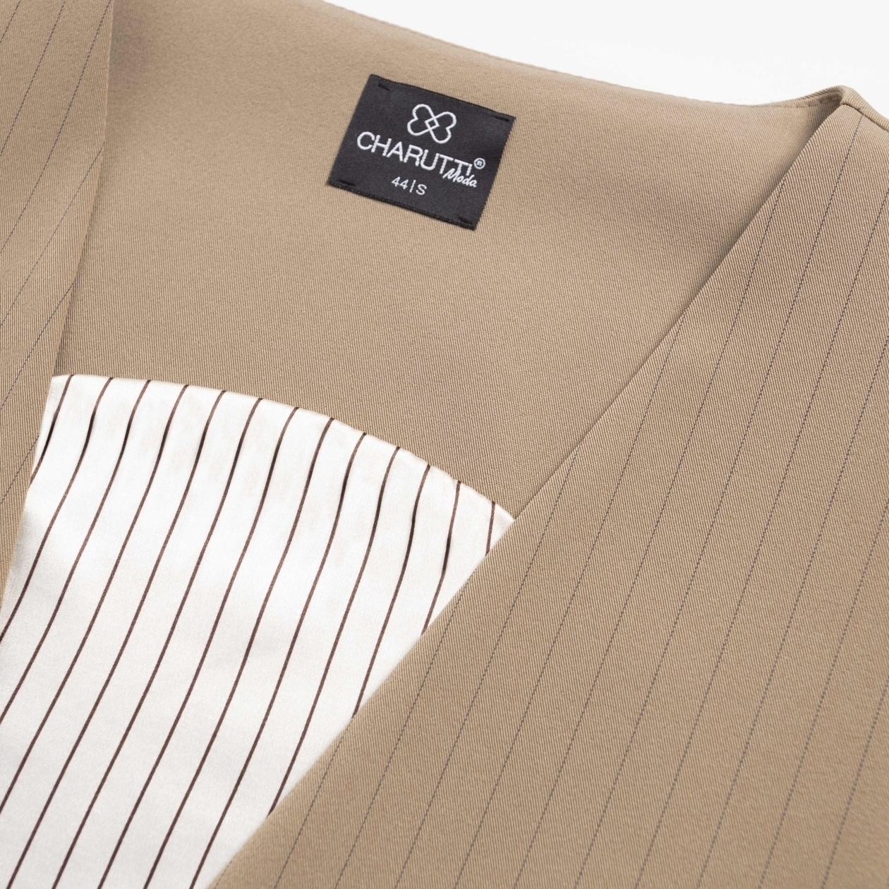 2026-й – время power dressing! Жилет ЧАРУТТИ – это ваш личный инструмент влияния: добавьте дерзкий кружевной акцент, и любой диалог сложится в вашу пользу. Не просто вещь, а уверенность с первого взгляда! Костюмная ткань – прочная, благородная, с деликатной полоской и утончённой атласной подкладкой. Прямой силуэт жилета идеален для делового гардероба и вечерних встреч. Для тех, кто следит за трендами и хочет подчеркнуть статус.