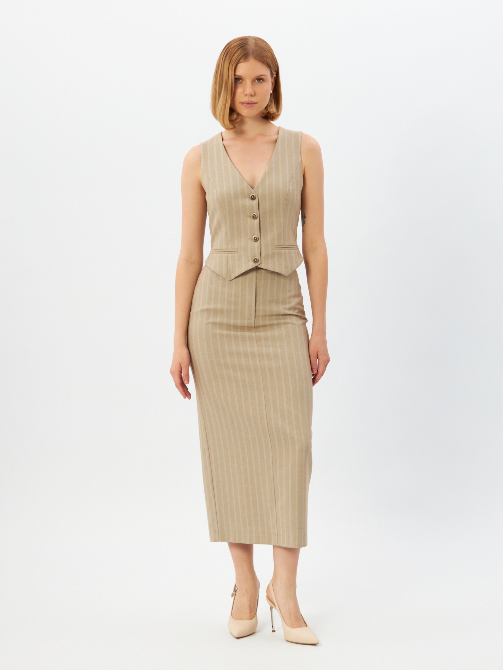 Жилет из костюмной ткани в полоску OD-920-2 капучино