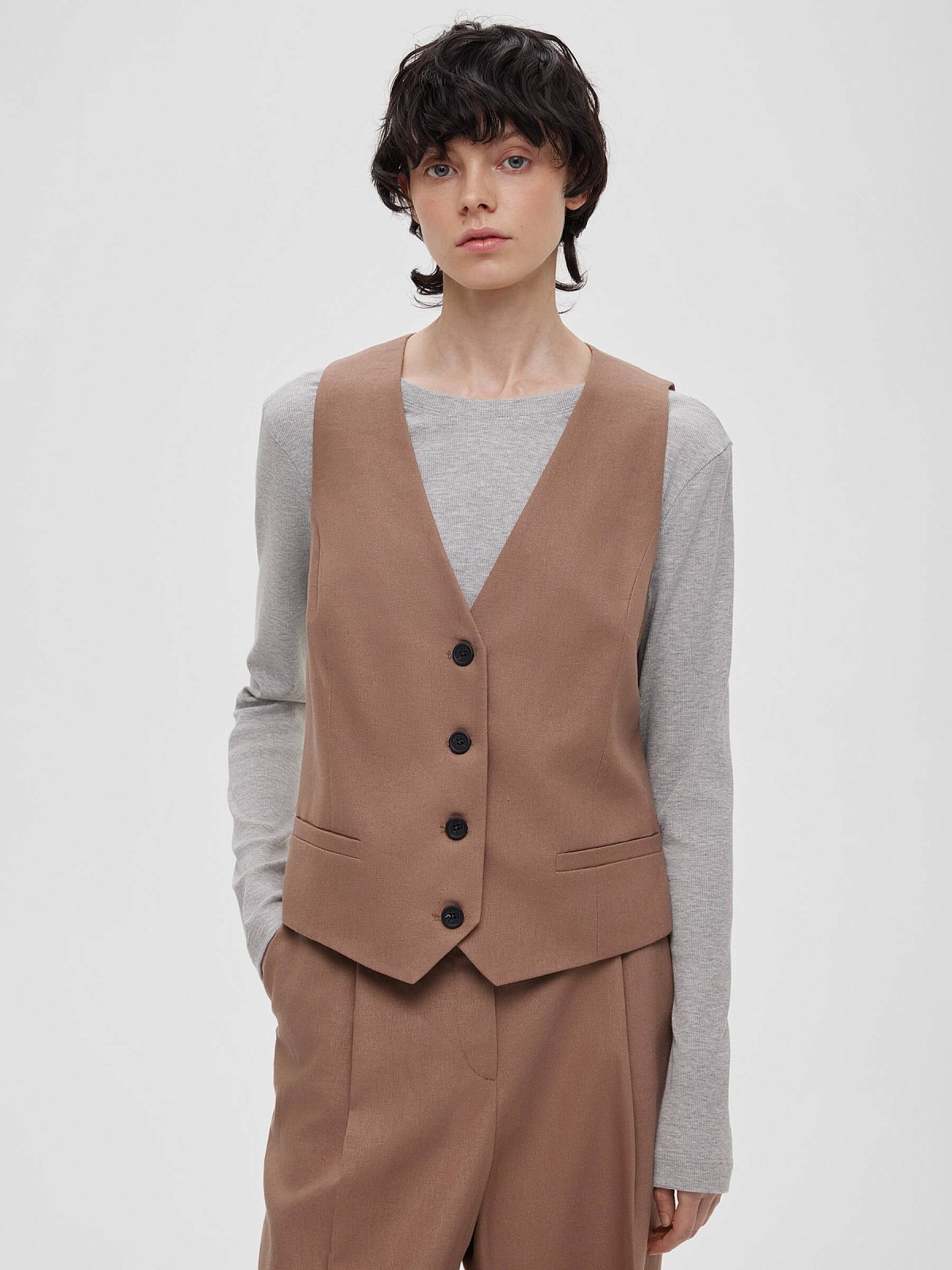 2709р4925рЖилет из льняной ткани 0203, светло-коричневый