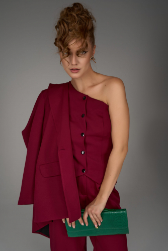 Жилет можно носить как самостоятельный элемент — с брюками или юбкой с высокой талией, так и в комплекте с пиджаком и брюк «Клио»  для создания эффектного костюмного ансамбля.
