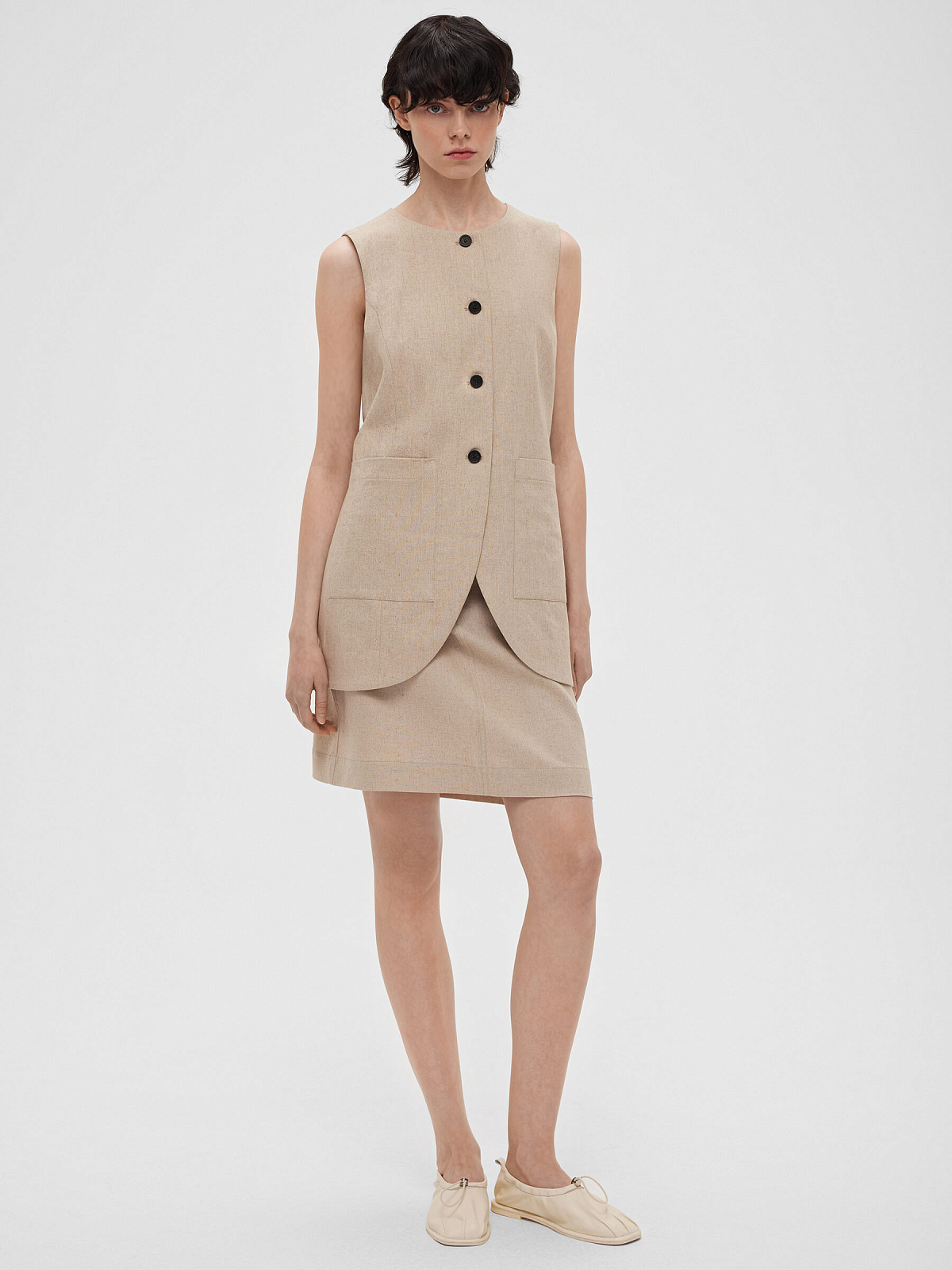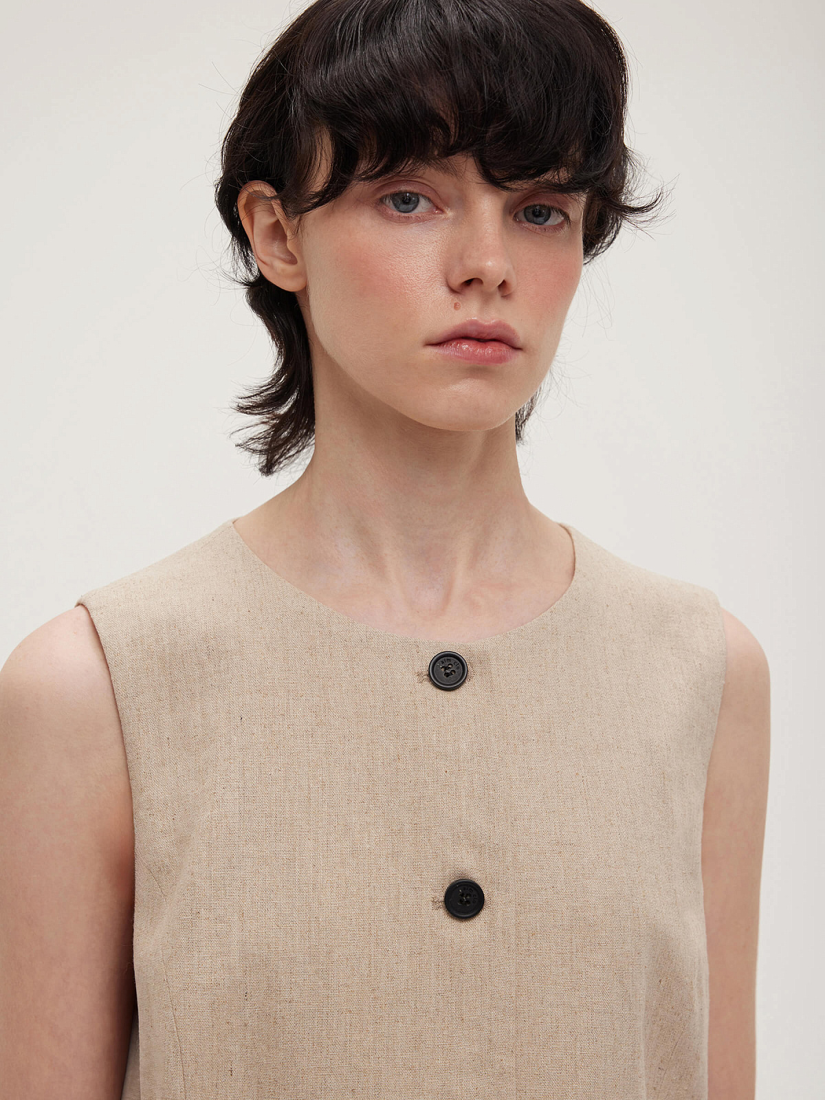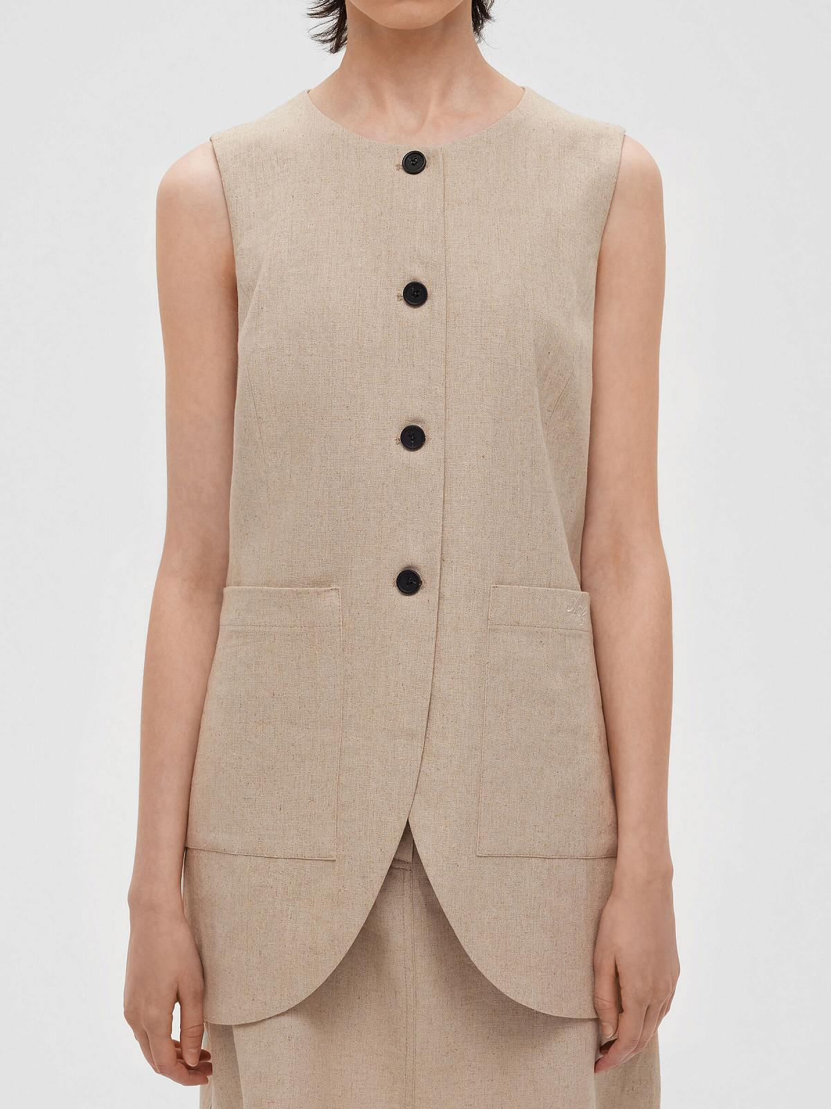 2463р4925рЖилет на пуговицах с карманами из льняной ткани 0188, бежевый