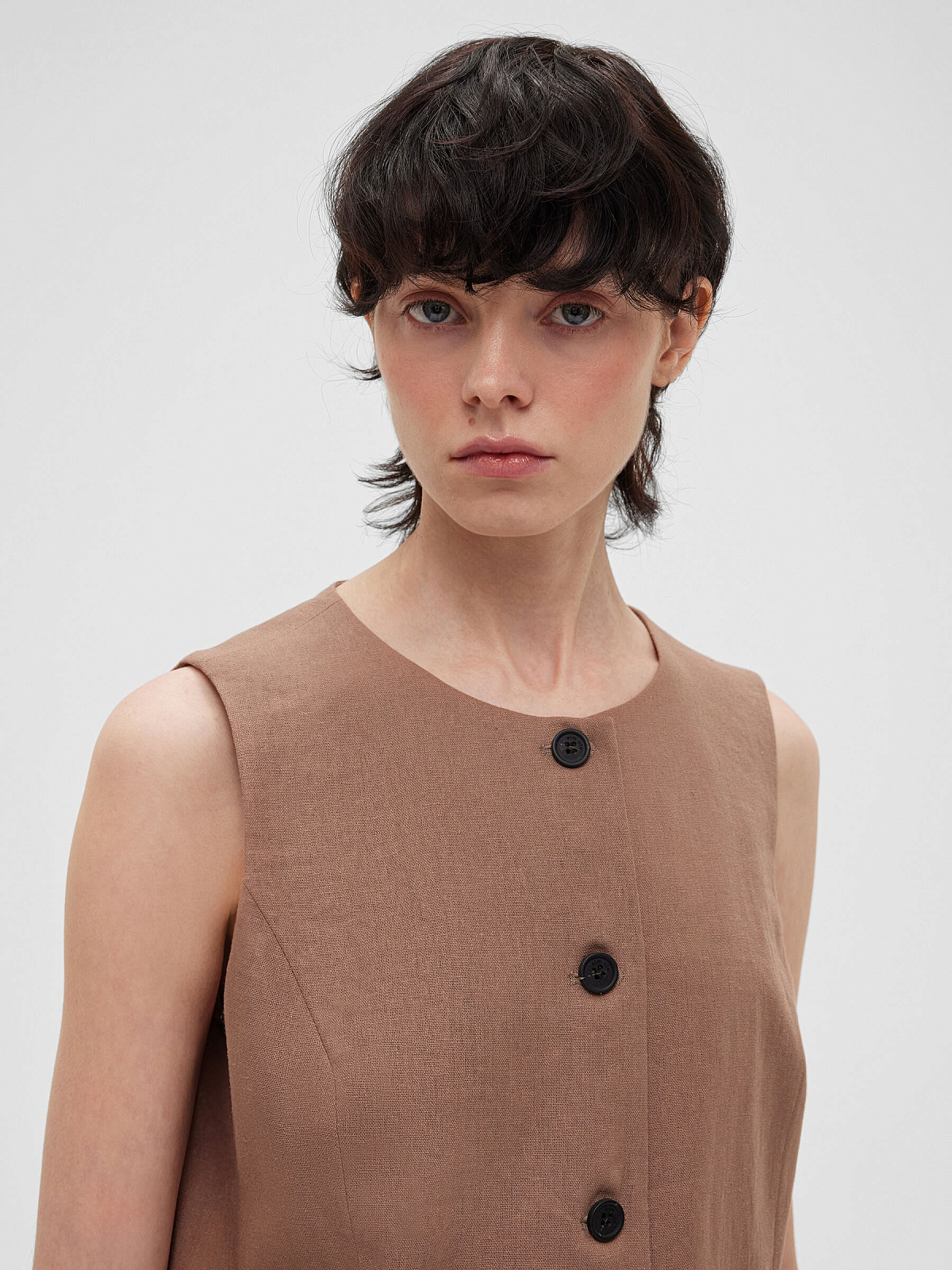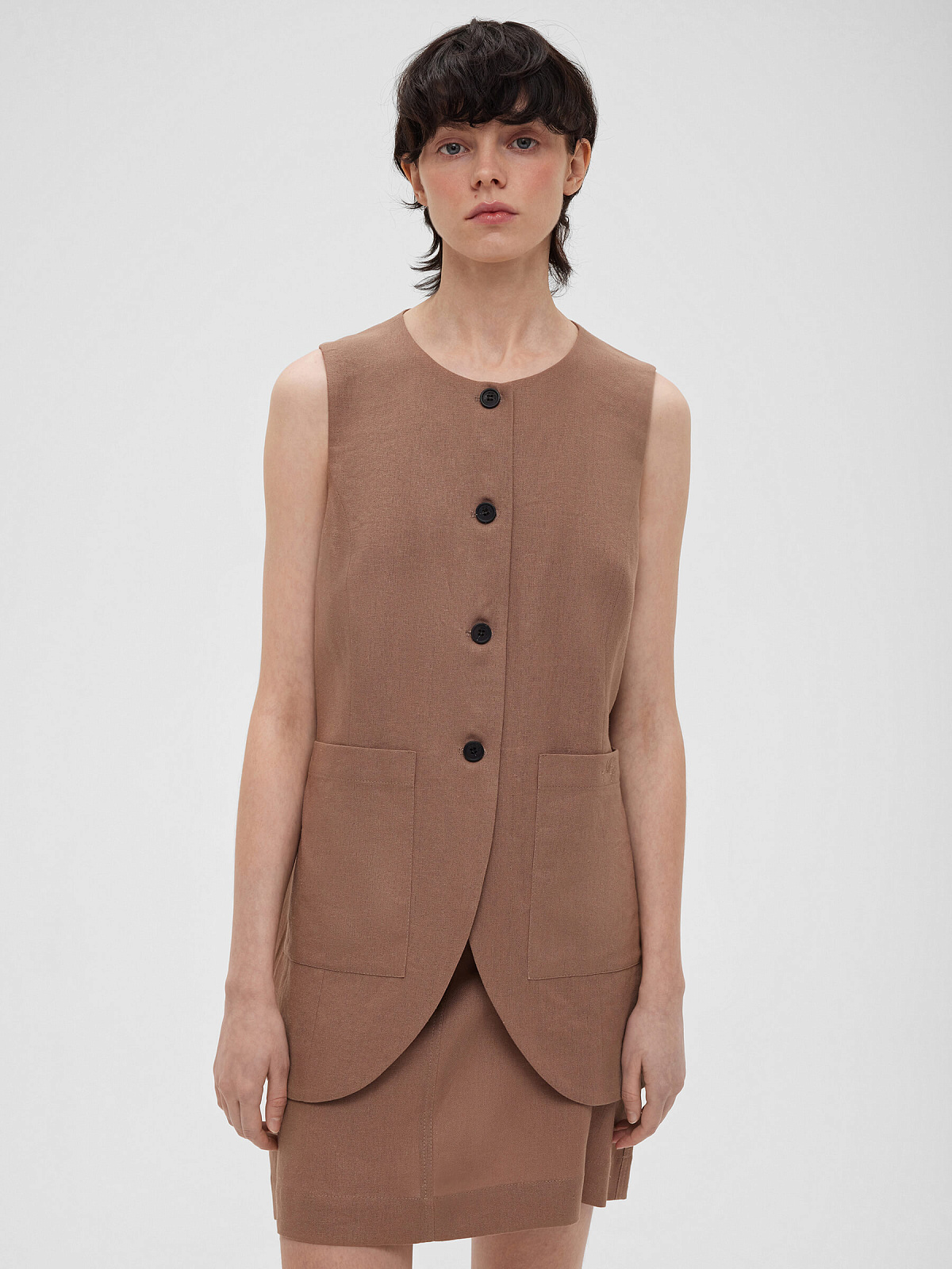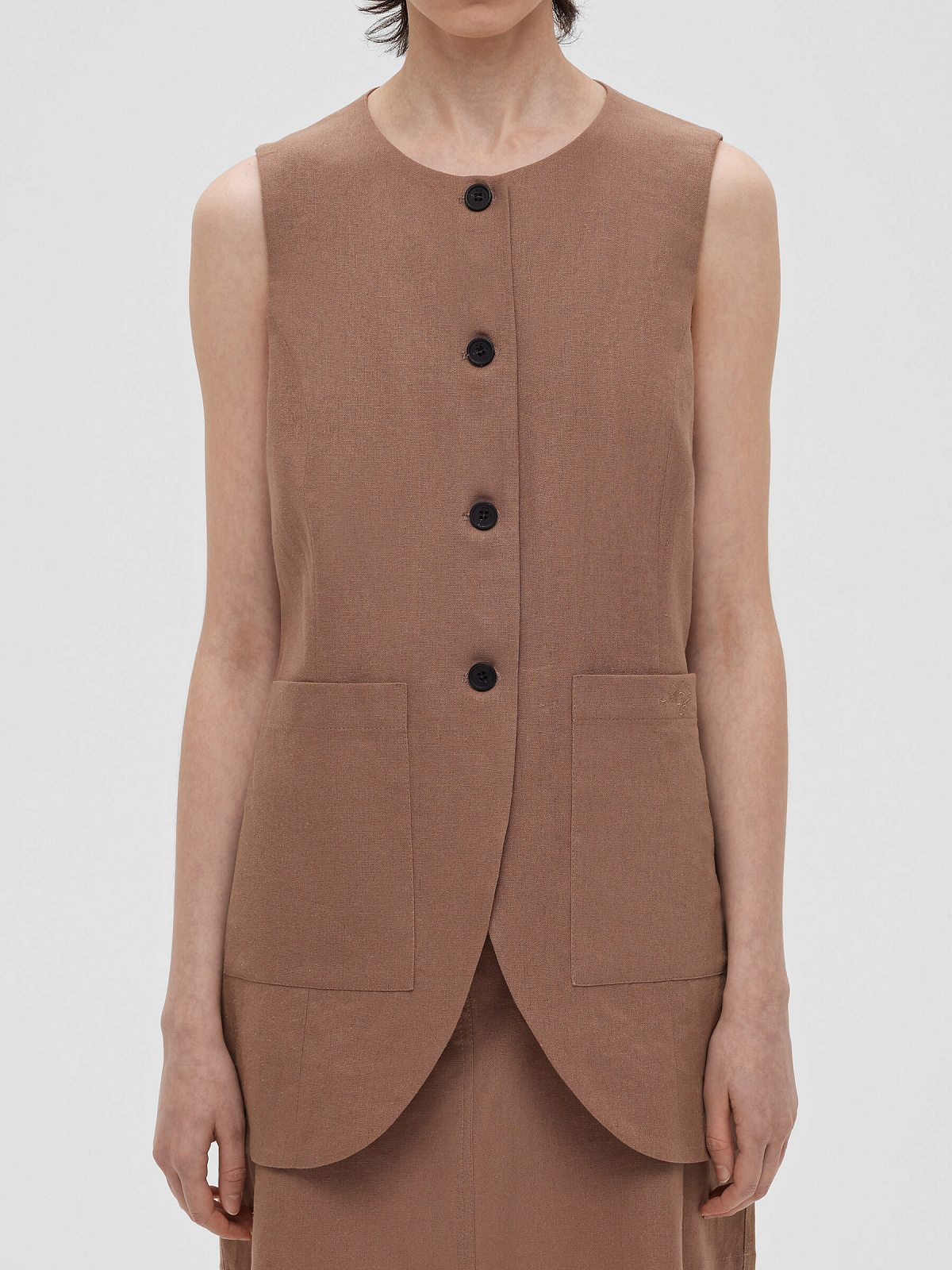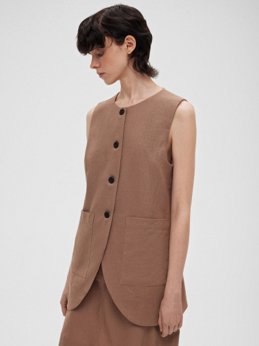 2463р4925рЖилет на пуговицах с карманами из льняной ткани 0188, светло-коричневый