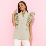 Жилет, который ощущается как исполнившаяся мечта. Тихая или громкая радость, поддержка близких и мурашки по коже – все это идет в комплекте к жилету CHARUTTI. Жилет из экокожи приталенного силуэта. Асимметричный подол изделия. Жилет застегивается на пуговицу. Легкая баска по спинке изделия.