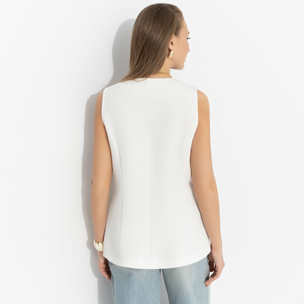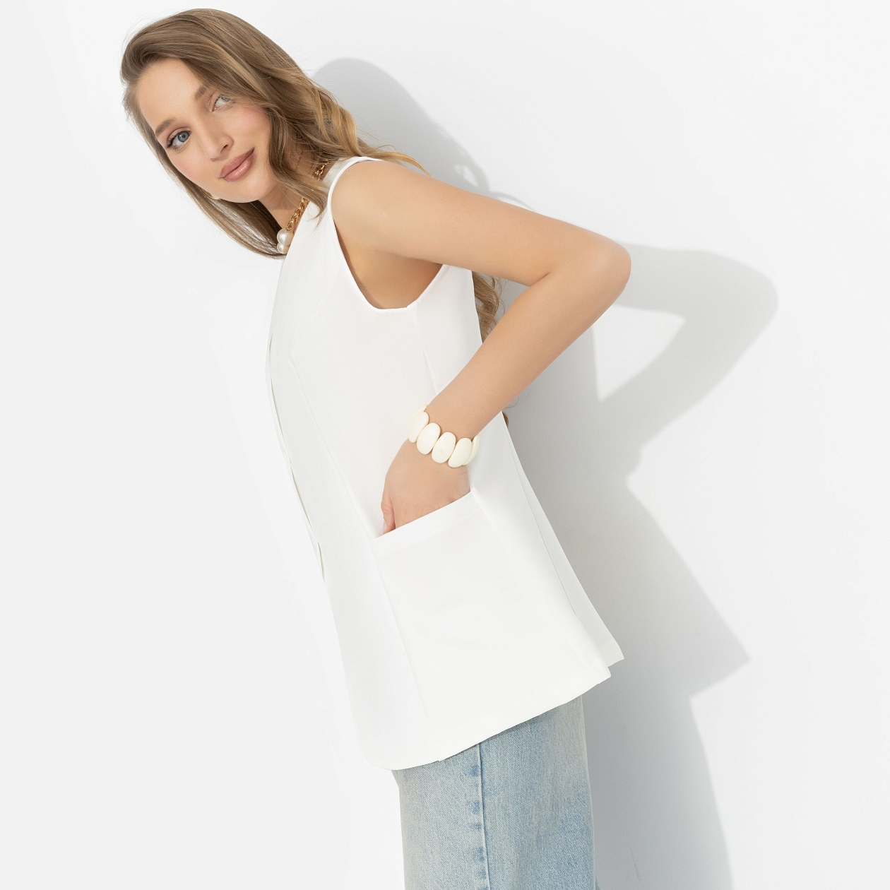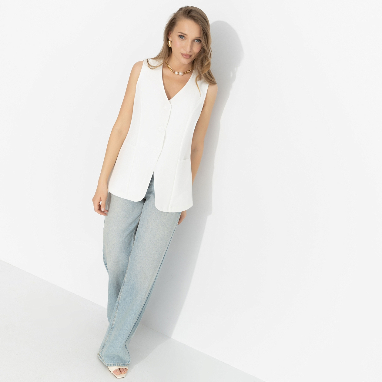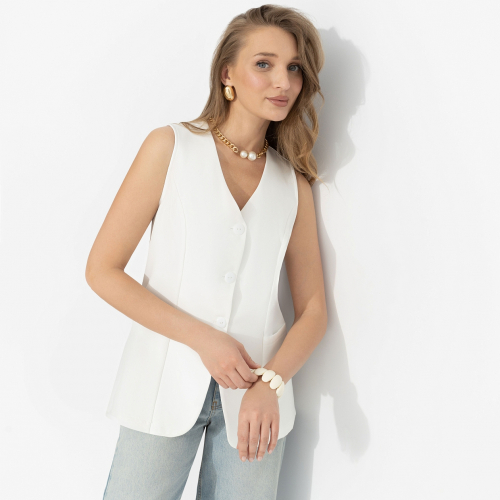 После того, как твой гардероб пополнился этим жилетом от ЧАРУТТИ, по утрам ты не думаешь «что надеть», просто берёшь его − и уже выглядишь как надо. День складывается, встречи идут мягко, планы перестают напрягать. Та самая вещь, которая не требует сценария, потому что отлично работает в любом. Жилет из костюмной ткани даёт чистый, вытянутый силуэт без жёсткости. Лаконичный крой, аккуратный вырез и мягкая посадка делают его супер-гибким: носи с денимом, классическими брюками или юбками. Можно на голое тело или в слой − всегда выглядит собранно, но легко.