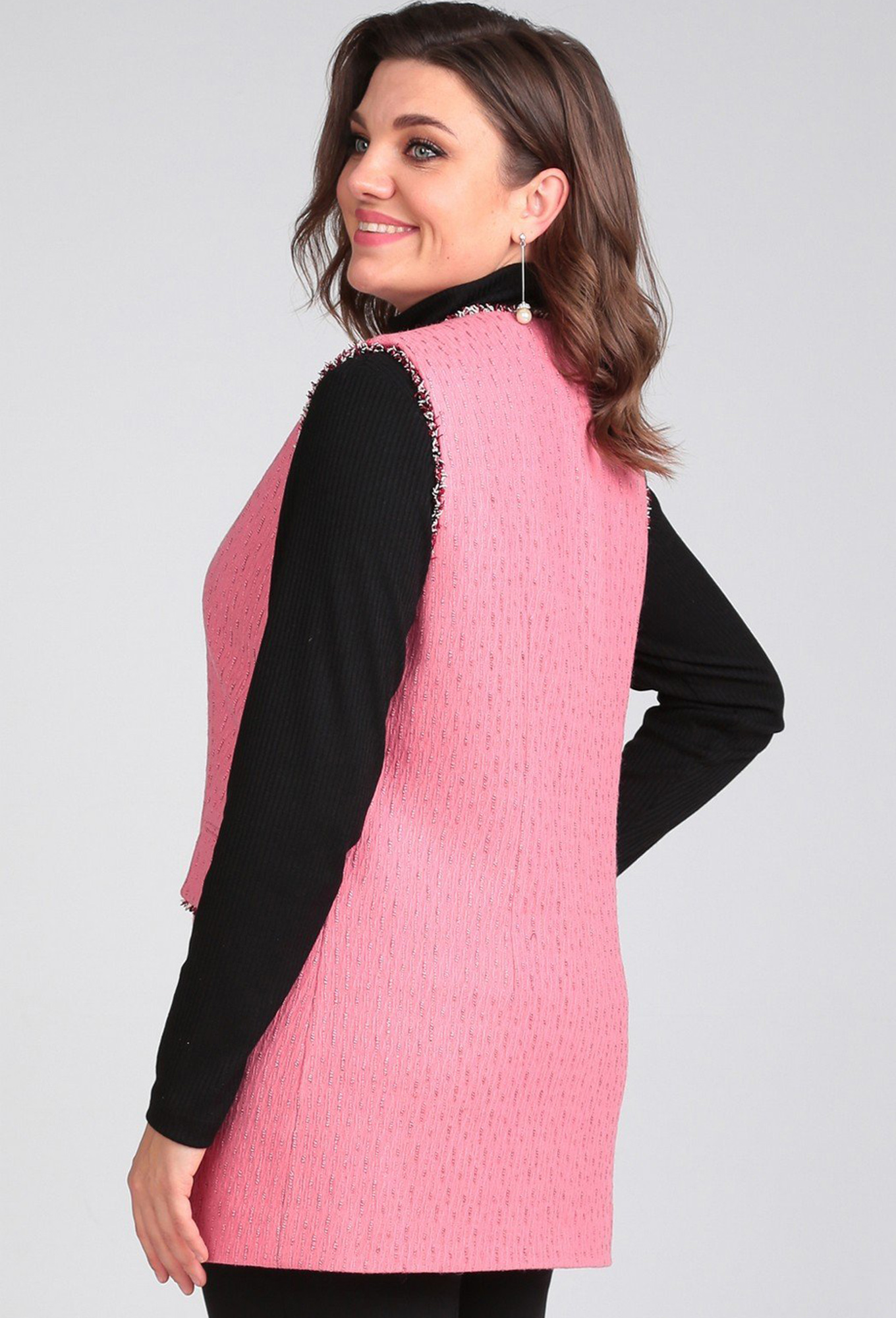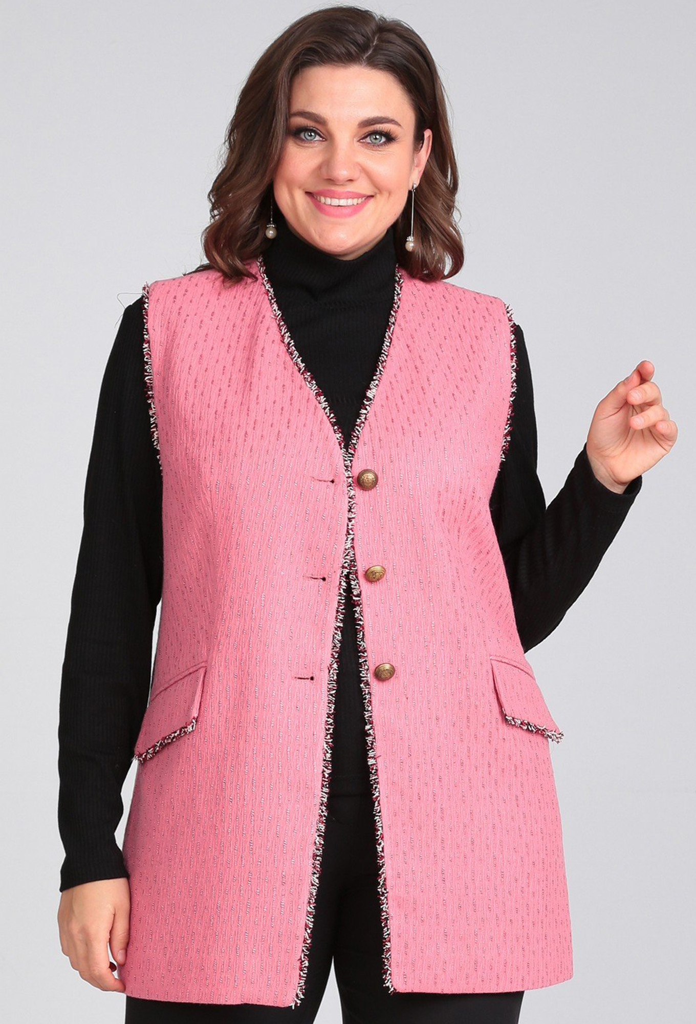 Модель: Виола Стайл 1127 розовый ..показатьРост: 164 см (девушка на фото ростом 170см) Сезон: Осень-Зима Тип ткани: Шерсть 70%, полиэстер 20%, эластан 10%Жилет женский удлиненный из костюмной ткани, полуприлегающего силуэта, на подкладке. Перед жилета с центральной бортовой застежкой на 3 петли и пуговицы (размер и цвет фурнитуры может незначительно отличаться от фото). В нижней части передних половинок жакета - прорезные карманы с клапанами. Спинка со средним швом. По краю клапана, борта, горловины и проймы - отделочная бахрома.