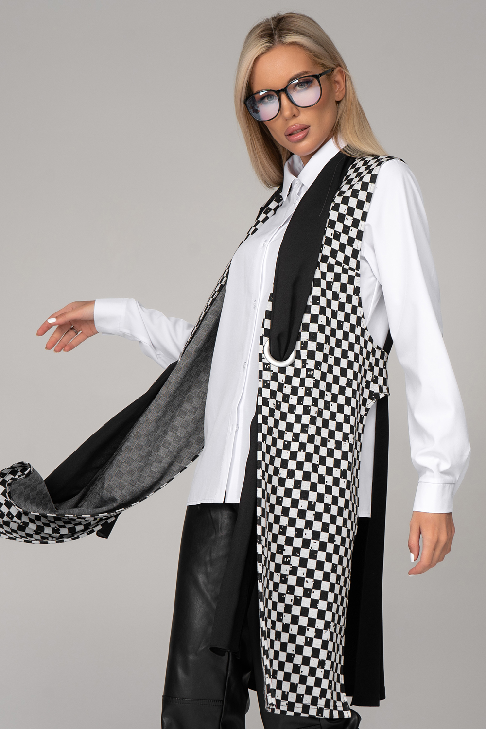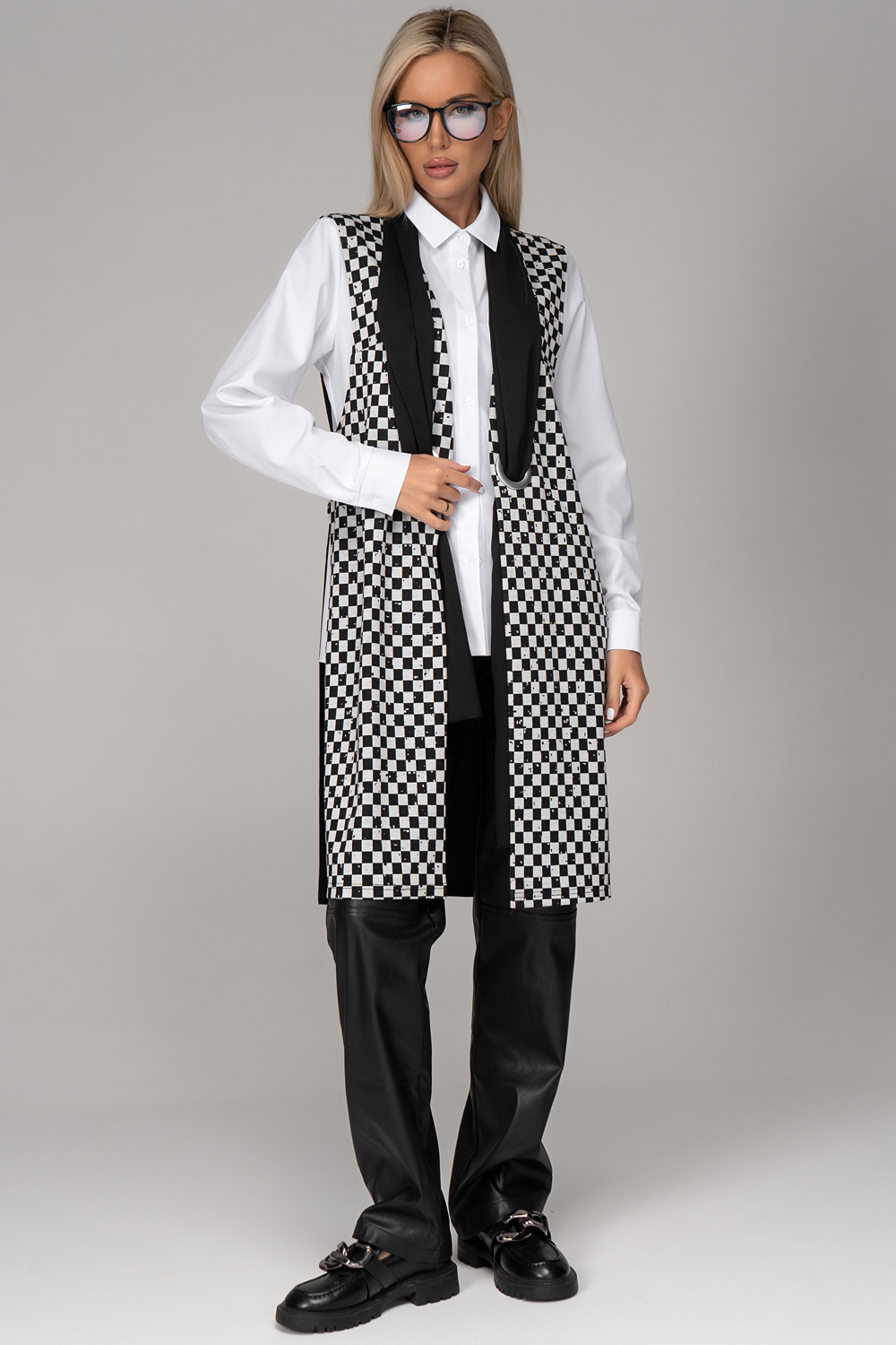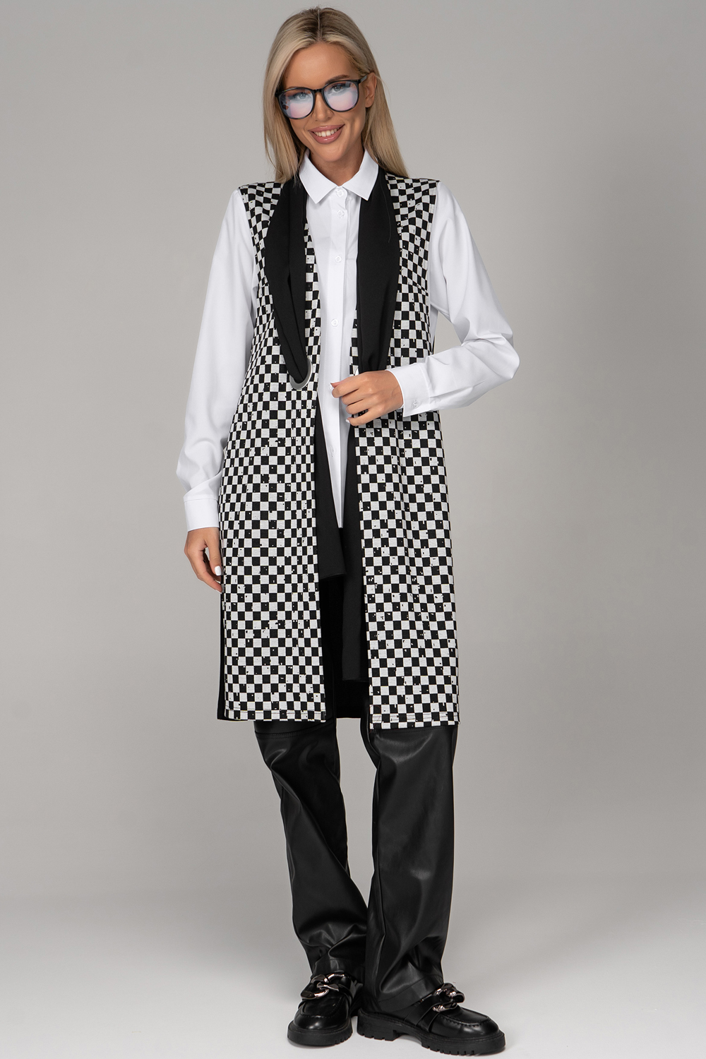 Жилет – деловая классика для женщин. Отличный выбор для создания стильного и элегантного образа на работу, в офис. Модель нарядная и женственная, ее удлиненный крой придает особый шарм. Сочетание роскошного дизайна и идеальной посадки делает этот жилет идеальным вариантом для женщин, которые ценят стиль и комфорт.