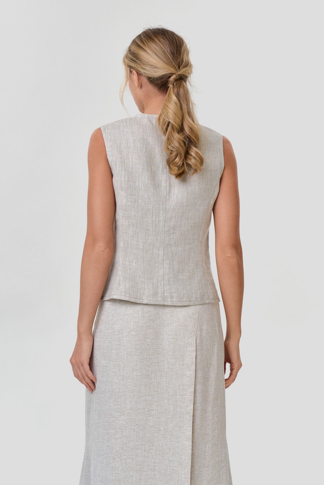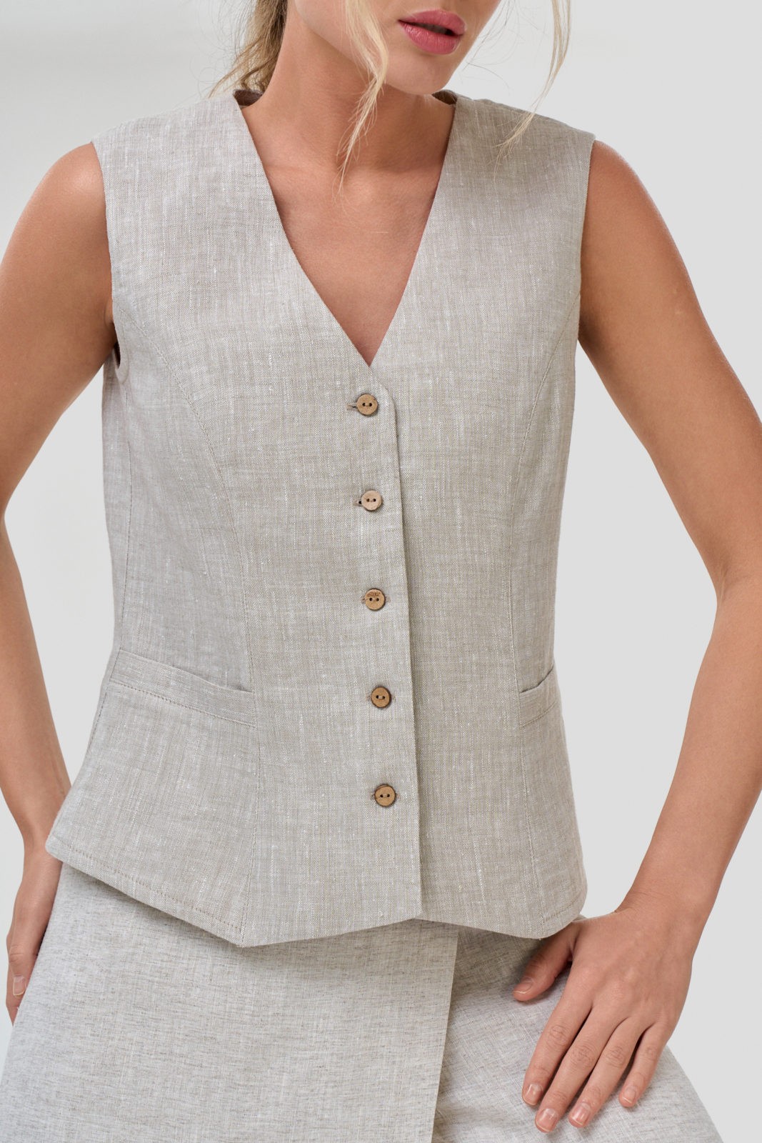 Жилет прекрасного качества, заказала на 2 размера больше, боялась усадки после стирки, сидит неплохо свободненько, держит форму, проймы не очень большие, можно даже на голое тело носить и не короткий, на 163 как на модели.