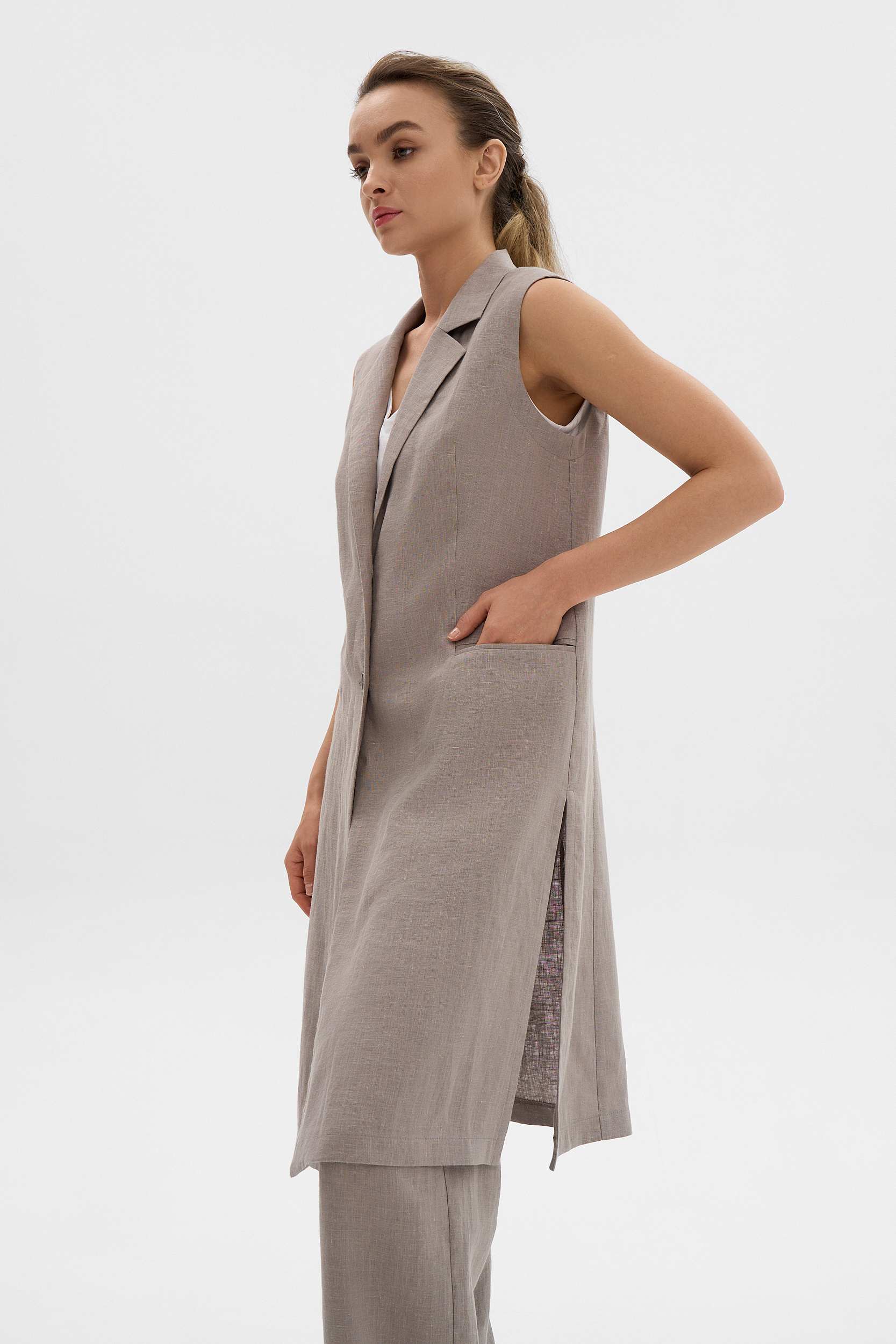 Жилет ооочень понравился. И с брюками любого фасона (широкие, узкие), и с платьями (длинными, короткими), модель супер, универсальная, с любой одеждой смотрится замечательно. Подходит к любому верху и с любым воротником (водолазка, блузка, рубашка, футболка), модель очень удачная