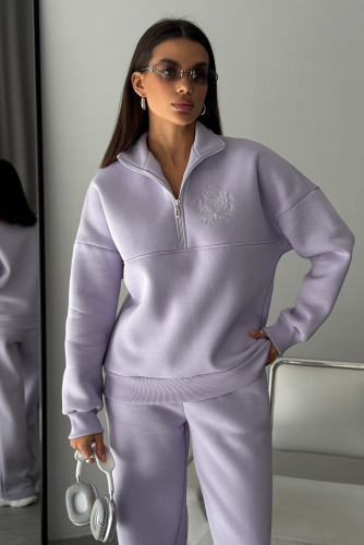 Теплый женский спортивный костюм отличный выбор в качестве базовой одежды для зимы и холодного демисезонного периода! Комплект - двойка из коллекции включает свитшот с длинными рукавами и брюки с высокой посадкой. Модели сшиты из мягкого и приятного к телу футера. Это плотный материал, который приятно согревает и отлично дышит. В составе ткани хлопок и полиэстер. Вещи имеют прямой крой и свободно сидят по фигуре.
