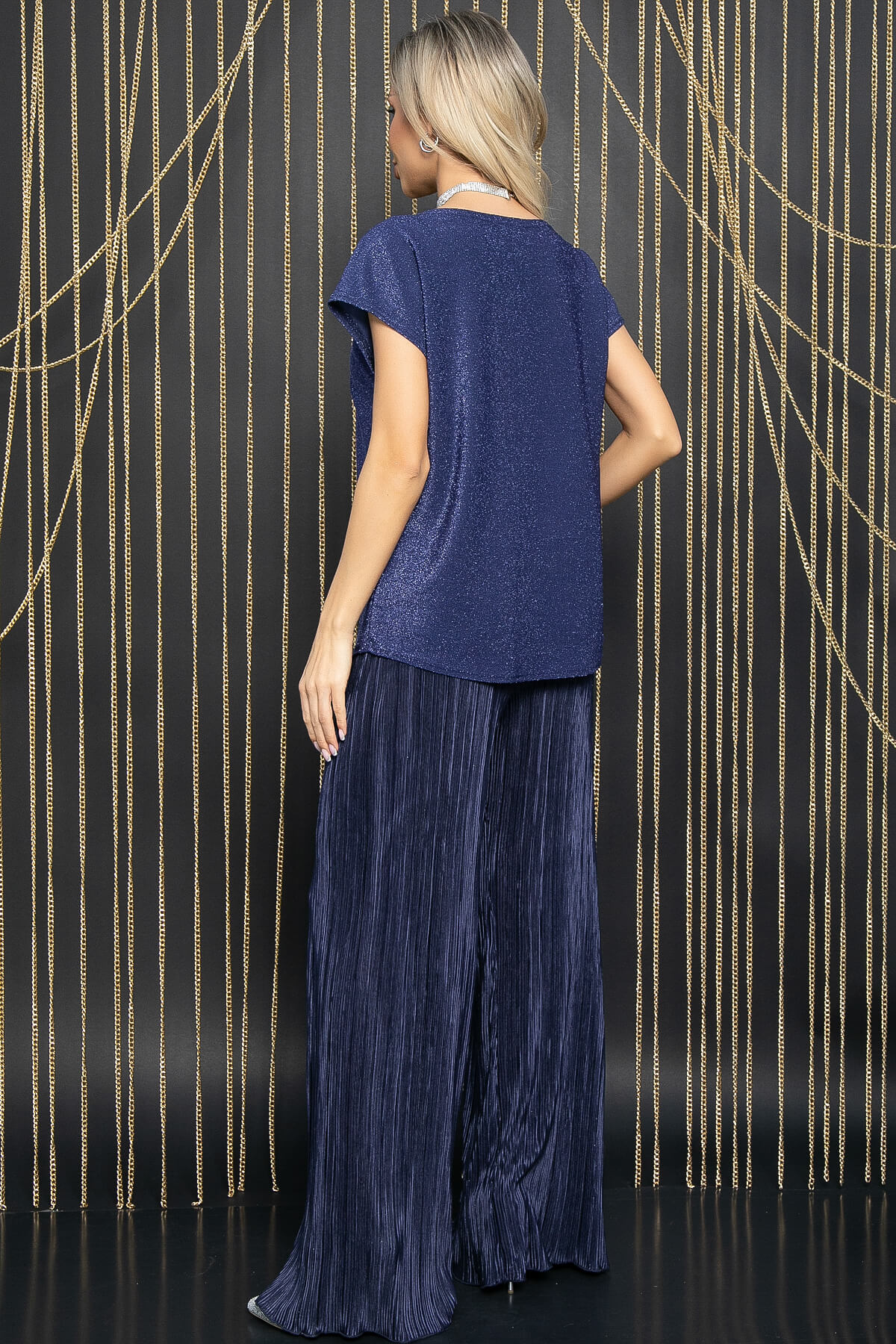 Этот комплект сочетает в себе превосходный стиль и удобство, обеспечивая вам безупречный облик на любом мероприятии. Костюм включает в себя мерцающую блузу и брюки на резинке из красивой ткани гофре. Стильная и изысканная блуза без рукавов, обязательно привлечет внимание своим утонченным дизайном и практичностью, в сочетании с широкими брюками и вечернего стиля создает элегантный и модный вид, который подходит как для официальных мероприятий, так и для повседневных прогулок. Создан, чтобы вы выглядели и чувствовали себя на высоте в любое время года и в любой ситуации!