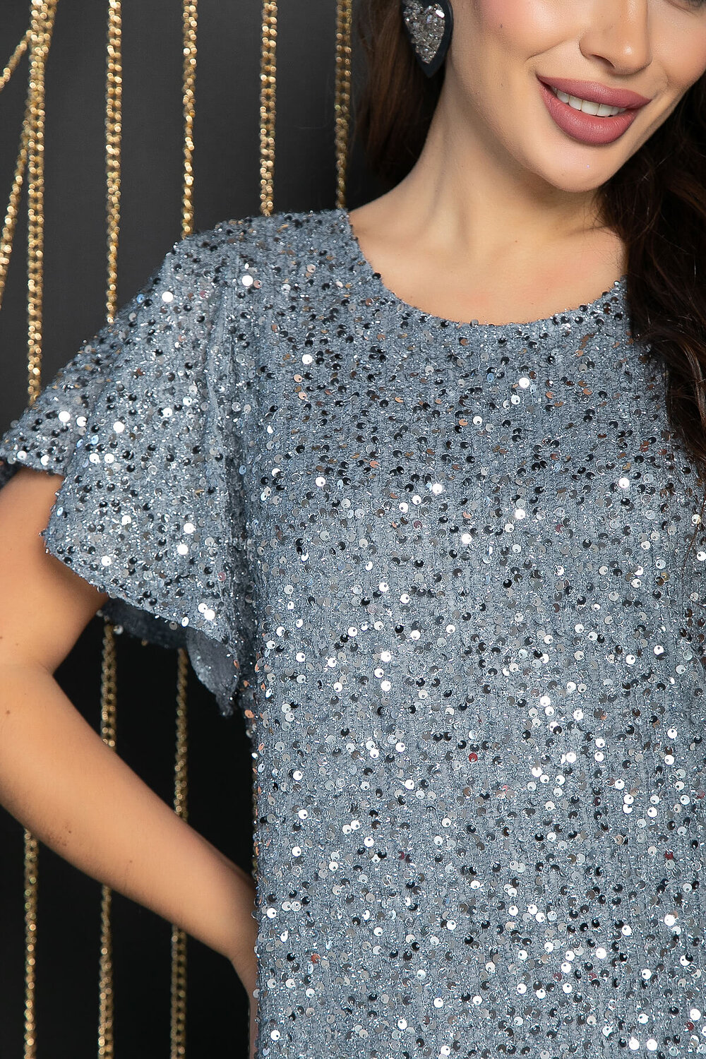 Вечернее платье с пайетками в длине миди — сделает ваш образ ярким и неповторимым, идеально подойдёт для празднования Нового года, корпоратива, дня рождения или свадьбы. Платье с красивыми рукавами имеет облегающий крой, который подчеркивает достоинства фигуры. А V-образный вырез горловины сзади добавляет образу соблазнительности и изысканности.
