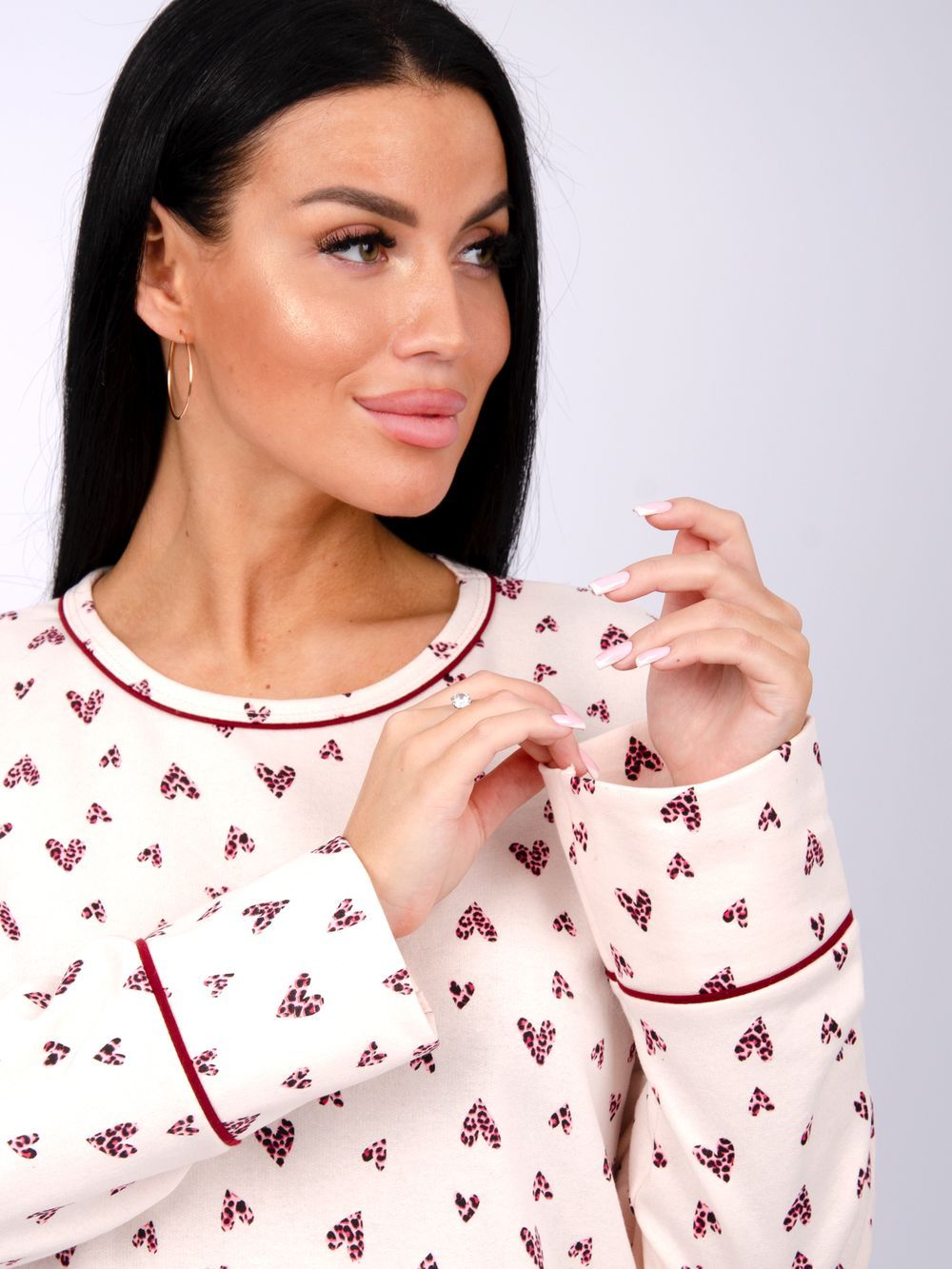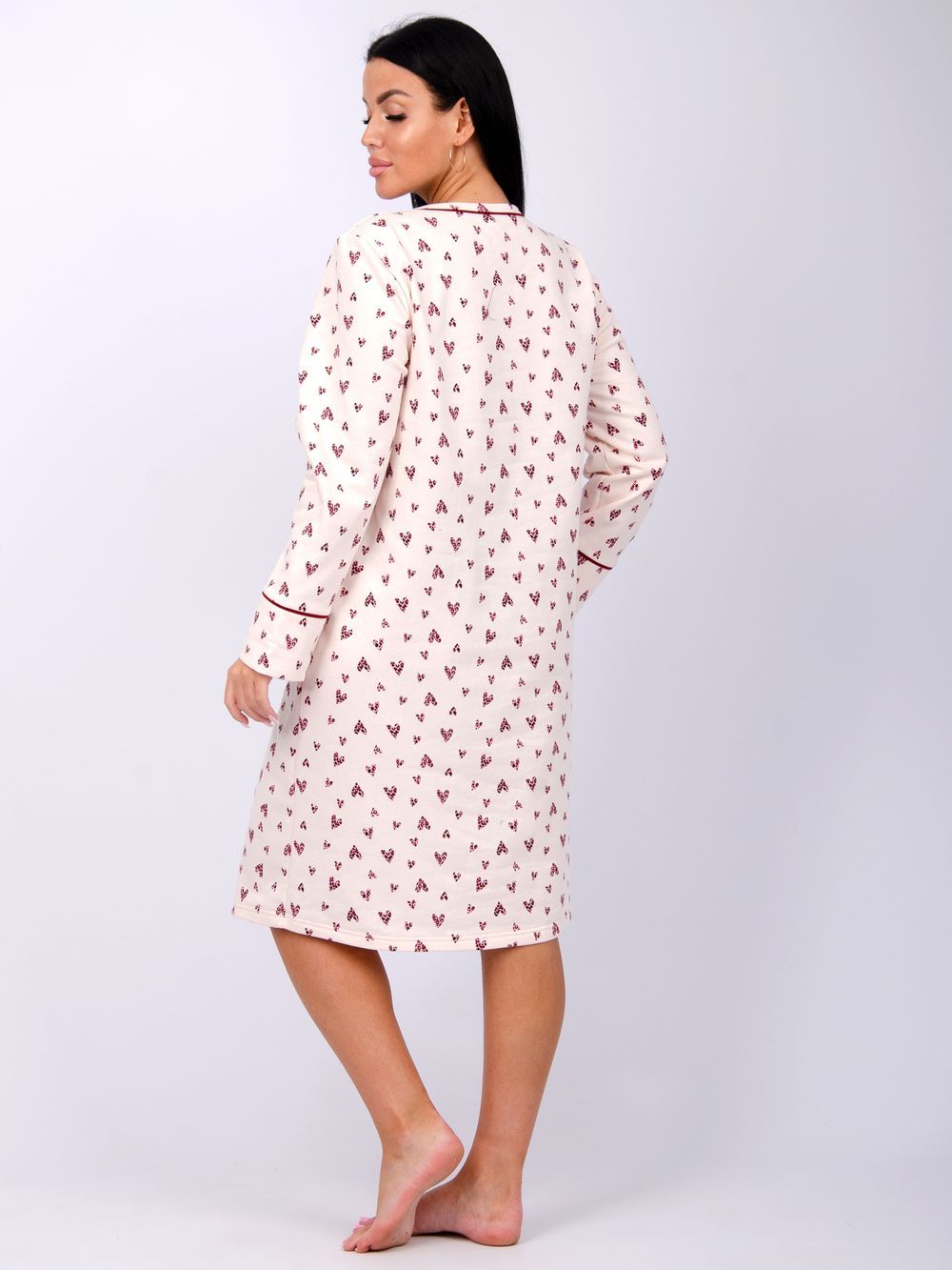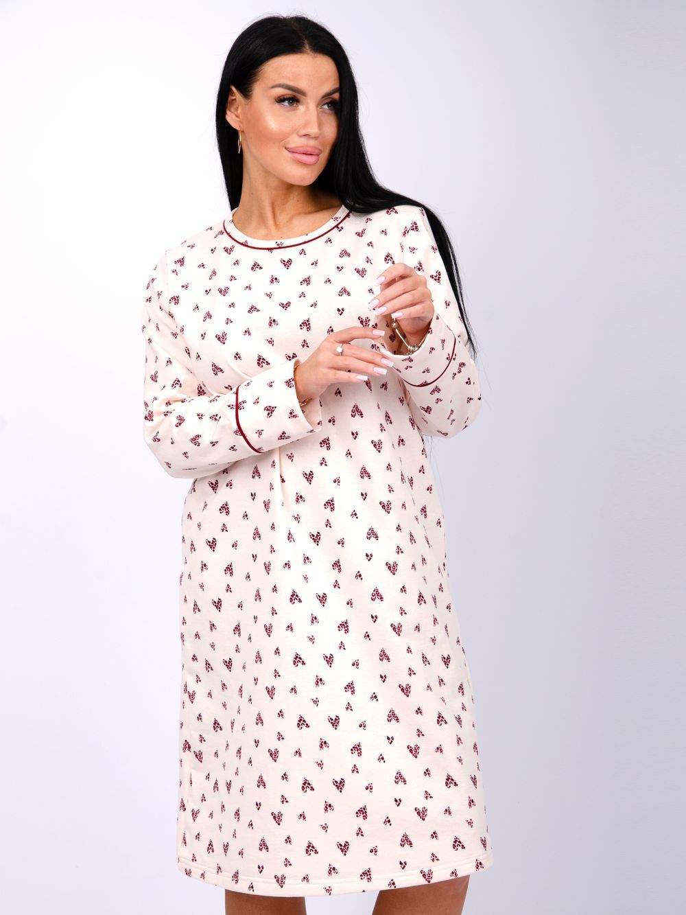 Женская сорочка больших размеров - это отличный вариант одежды. Теплая и уютная туника их мягкой хлопковой ткани с начесом. За счет свободного кроя сорочка будет удобна для сна, а благодаря своей длине, а также длинному рукаву не даст замерзнуть в прохладные ночи. Материал футер с начесом - это гипоаллергенная и приятная к телу ткань. Цвет: сердце; Материал: футер 2-х нитка с начесом;футер 2-х нитка с начесом; Состав: 100% хлопок.