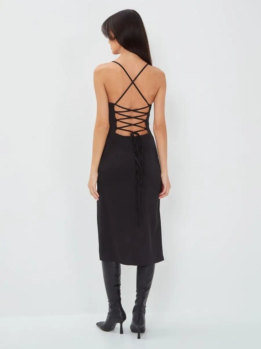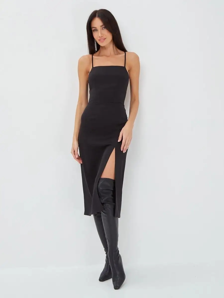 Завораживающее вечернее платье от TALIA станет настоящим украшением вашего гардероба! Эта облегающая модель миди подчеркнет все достоинства вашей фигуры, а глубокий черный цвет добавит загадочности и элегантности. Открытая спина с соблазнительным вырезом и регулируемые лямки-спагетти придают образу пикантности и женственности. Представьте себя на корпоративе, в центре внимания, в этом роскошном платье! Мягкая шелковистая вискоза в составе ткани подарит вам комфорт и уверенность в себе. Оно идеально подойдет для торжественных мероприятий, новогодних праздников и любых других особых случаев, когда вы хотите выглядеть просто неотразимо.