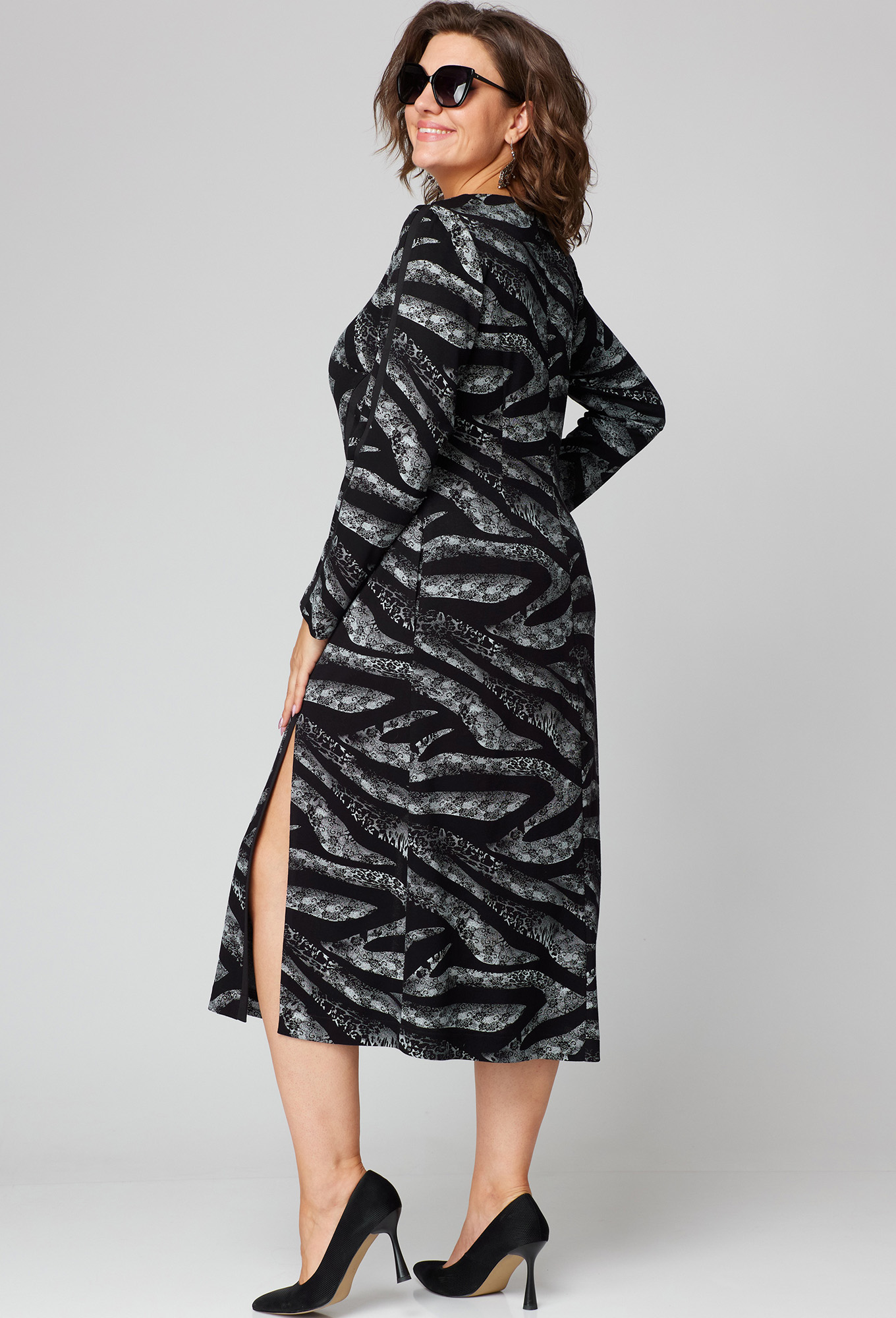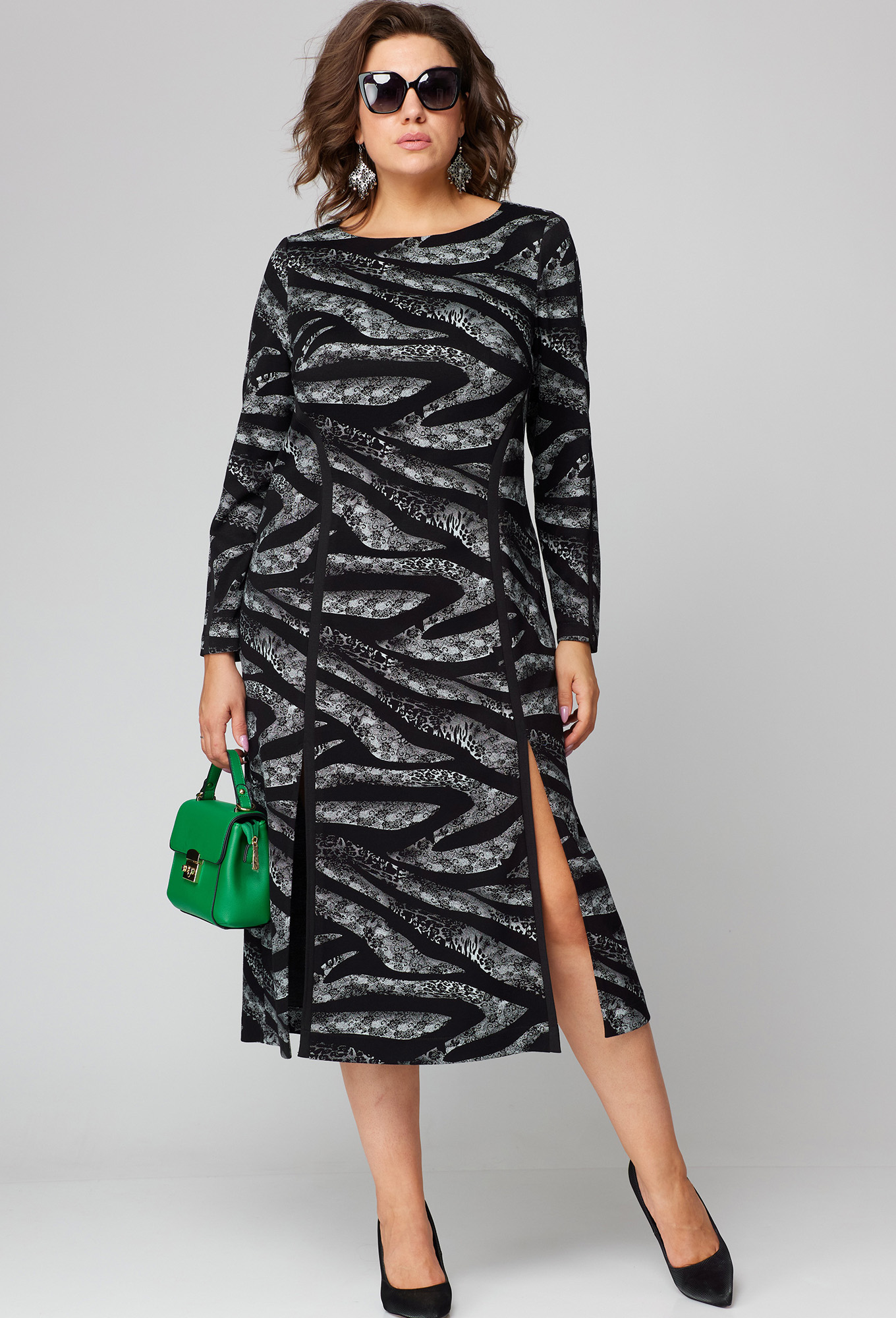 Модель: ЕВА ГРАНТ 9000В чёрно-серый <..показатьli>Рост: 170 см (девушка на фото ростом 170см) Сезон: Осень-Зима Тип ткани: Вискоза 60%, полиамид 36%, спандекс 4%Платье женское полуприлегающего силуэта, выполнено из трикотажного полотна в сочетании с отделкой, вырез горловины круглый на обтачке, рукав втачной по центру с отделкой. По переду рельефы с отделанной вставкой в которых обработаны разрезы, по спинке потайная застежка молния. Декором платья служит принт основной ткани и вставки по рельефам и рукавам.
