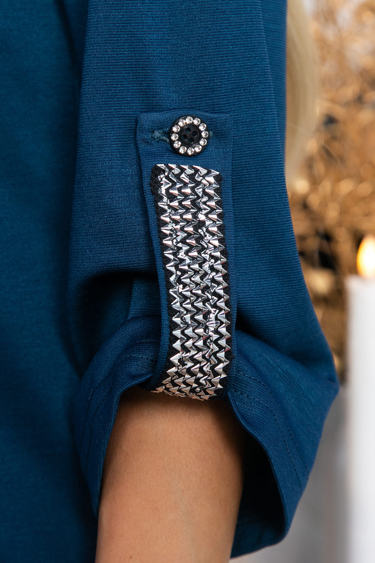 Изящное платье прямого кроя станет отличным дополнением вашего гардероба. Платье оснащено округлой горловиной и рукавами 3/4 на пате с пуговицей, обеспечивая комфорт и элегантность. Разрез по заднему полотнищу позволяет свободно двигаться. Низ изделия и паты украшены декоративной лентой, что придает платью завершенный и стильный вид. В комплекте идет пояс из основной ткани, который поможет подчеркнуть талию и создать гармоничный силуэт.