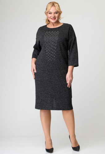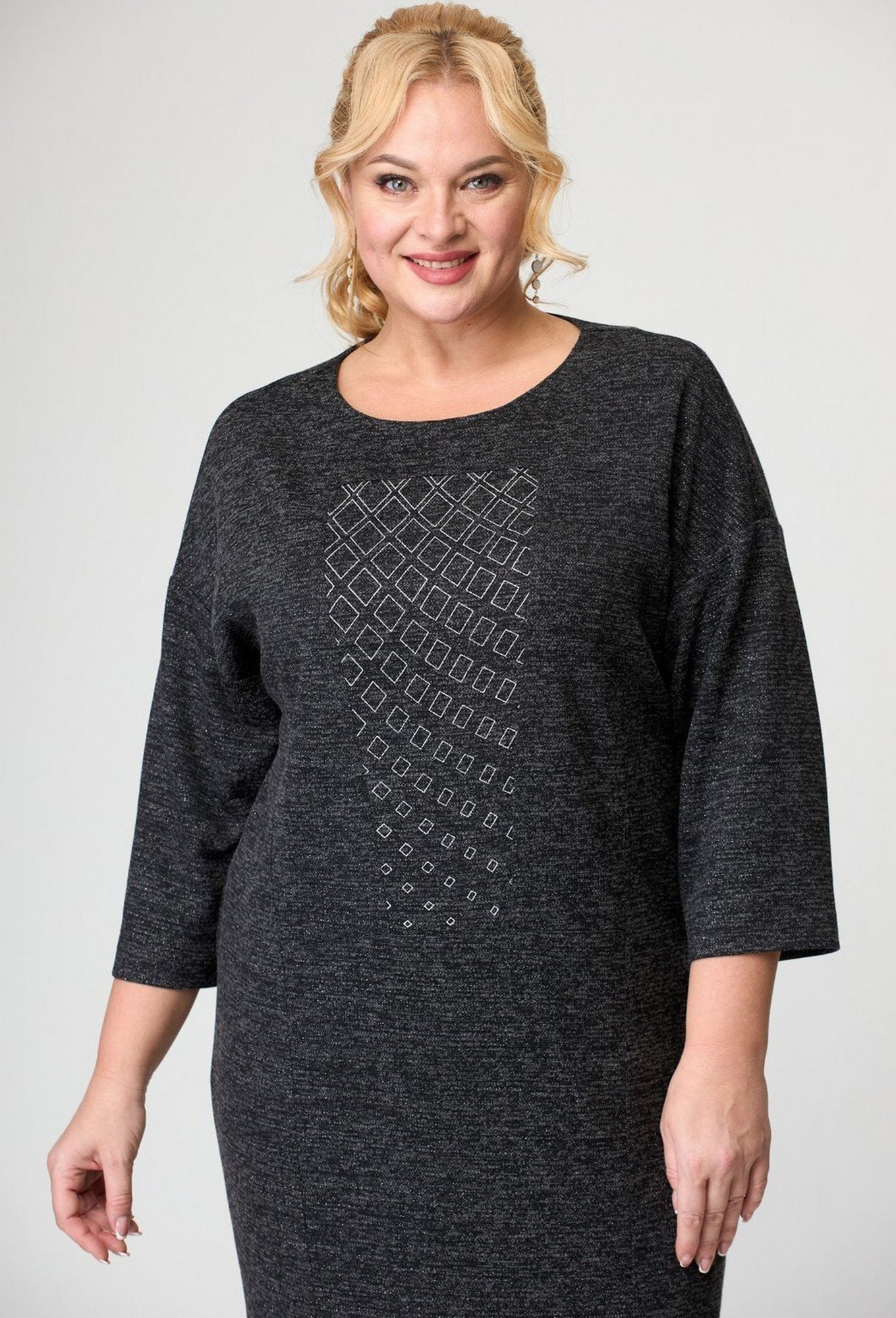 Модель: ЛТС 2101 серый Рост: 164 ..показатьсм (девушка на фото ростом 170см) Сезон: Круглогодичный Тип ткани: Трикотаж вискоза – 60% , полиэстер - 30% , лайкра– 5%, люрексовая нить - 5%Женское платье комфортное, свободного покроя со спущенным плечом и углубленной проймой. По переду декоративная печать. Перед и спинка с притачной кокеткой. Вырез горловины округлый.