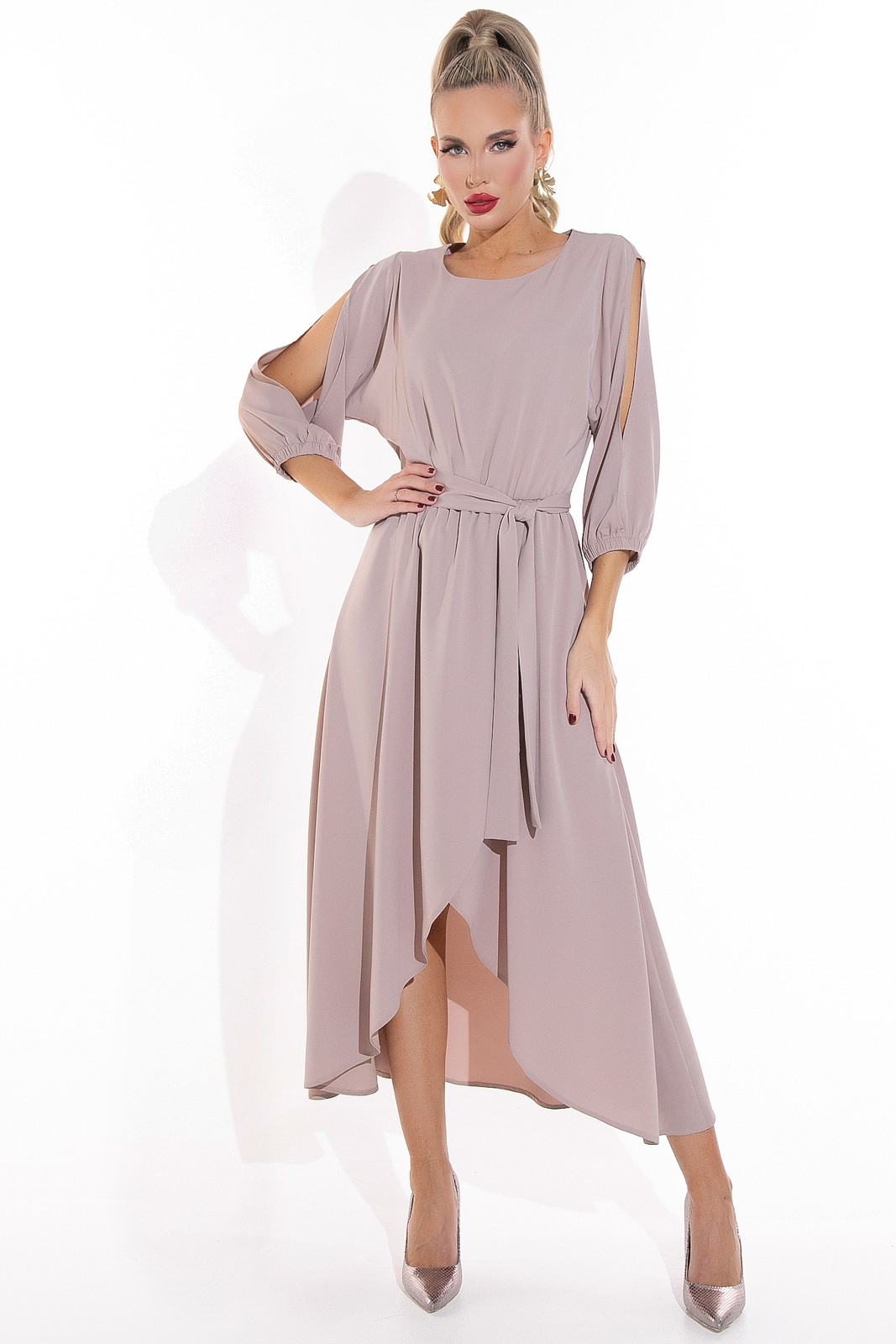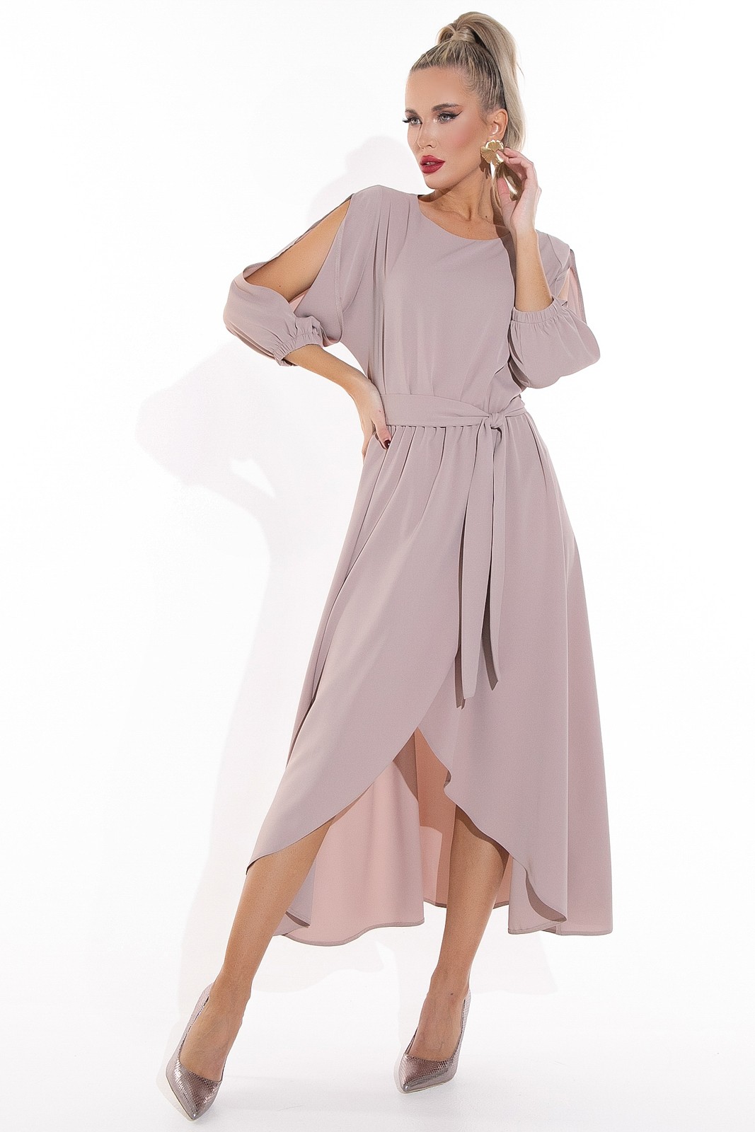 Каждое платье – новая история! Абсолютный бестселлер, то самое элегантное платье, про которое говорят “неотразимое”. Модель с отрезной линией талии на резинке, с поясом. Юбка длины миди на запах. Высокий соблазнительный размер ноги визуально удлиняет и вытягивает силуэт.