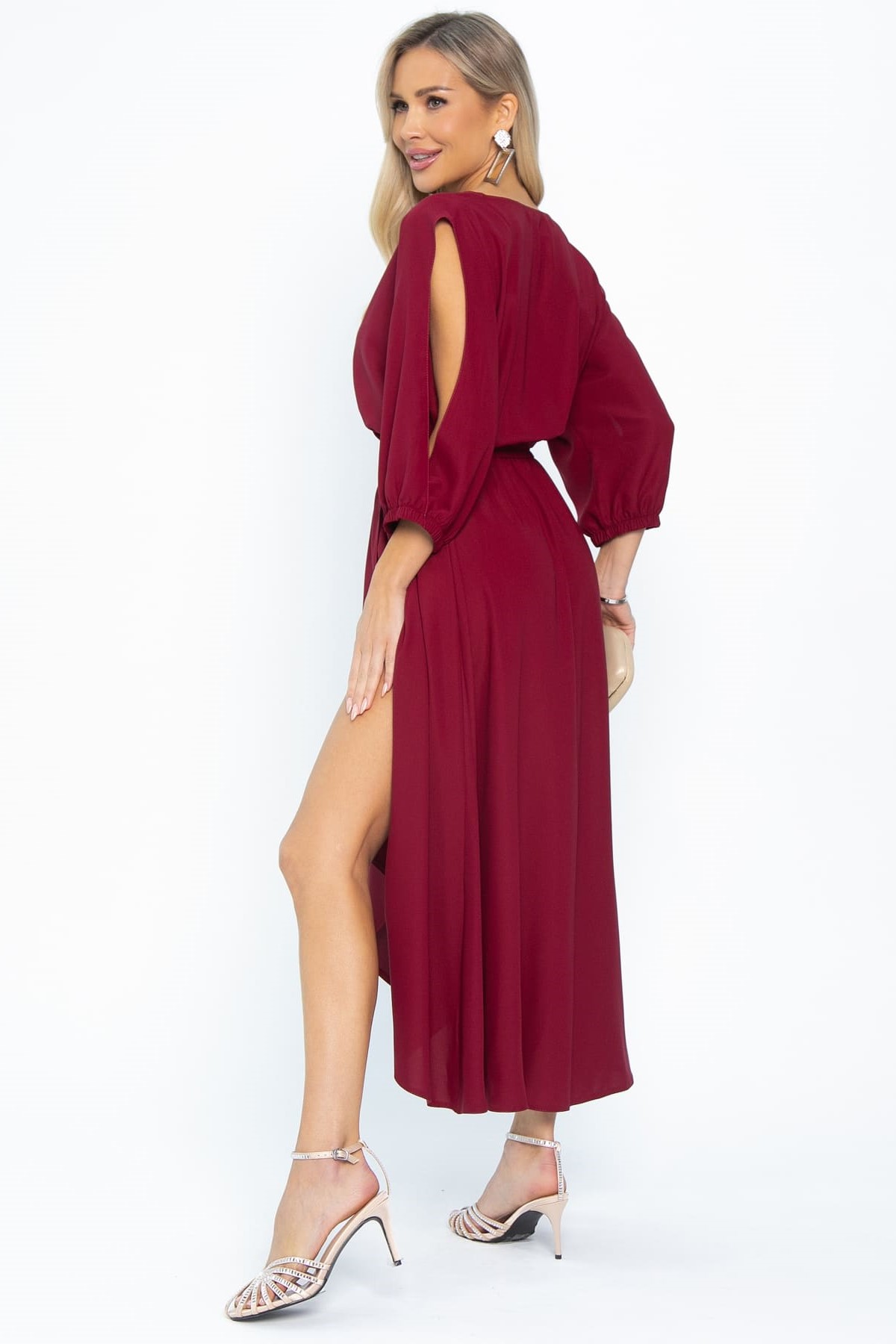 Стильное праздничное платье макси свободного силуэта с акцентными рукавами. Платье вечернее длинное без застёжки легко надевать и снимать. Будет прекрасным решением на торжество, свадьбу для подружек невесты, выпускной, если дополнить его подходящей обувью и аксессуарами. Подойдет для разных типов фигур, скроет нюансы при необходимости. Горловина — лодочка. В комплекте тканевый пояс.
