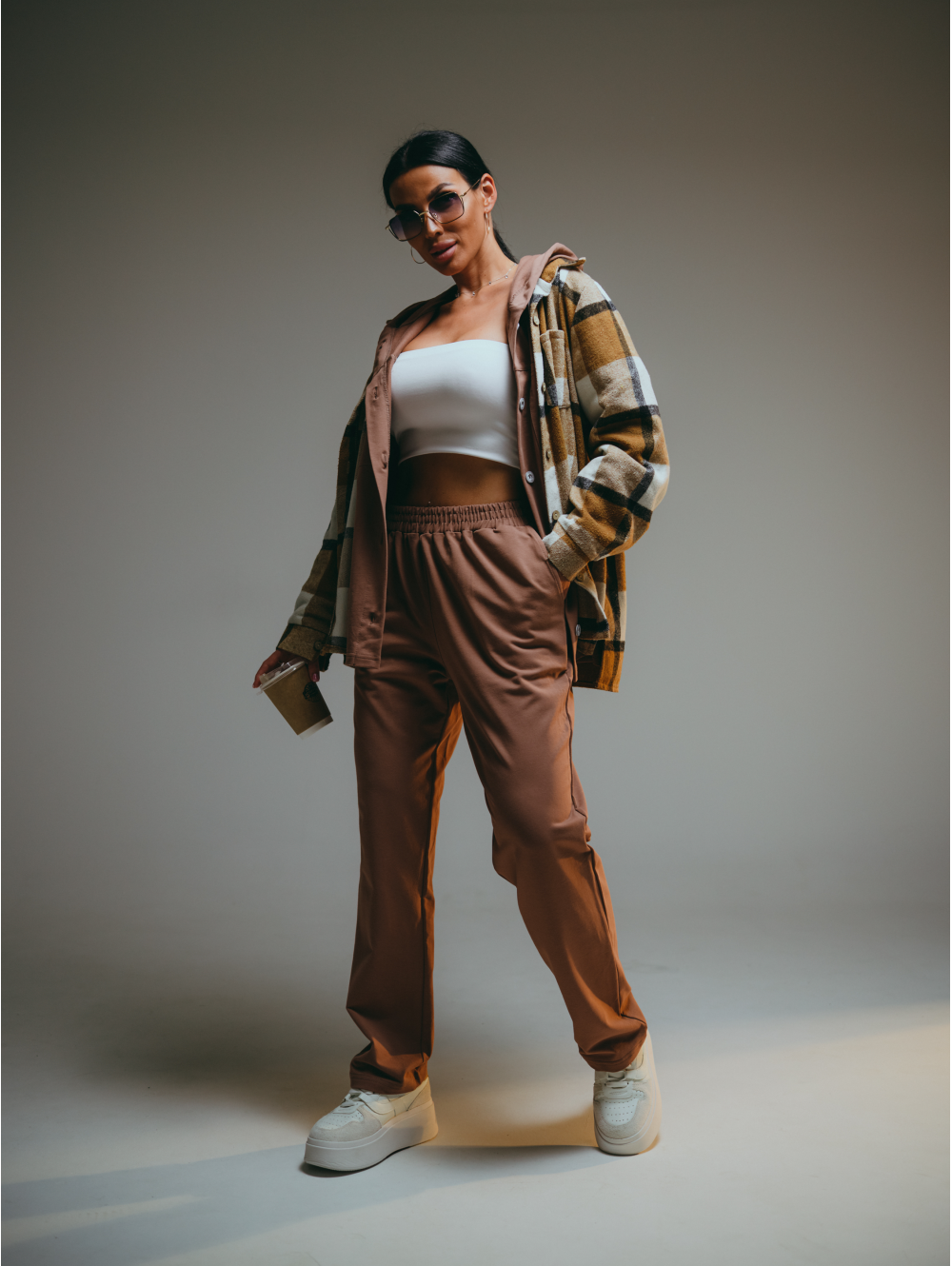 Представляем Вам наш костюм ПРЕСТИЖ,в стиле оверсайз, состоящий из кофты с капюшоном и на пуговицах и брюк с карманами. На полочке также находятся накладные карманы.