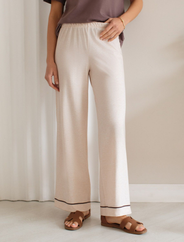 Прямые брюки из эластичного хлопка с контрастным кантом D44.120 бежевый меланж