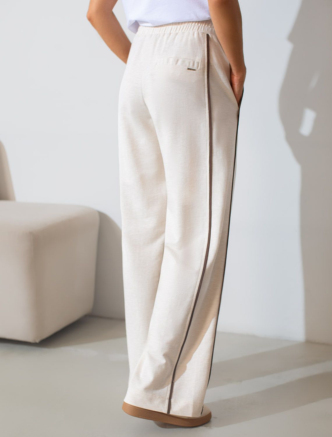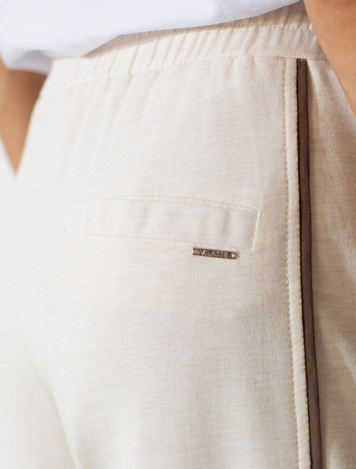 Прямые брюки овсяного цвета с эффектом меланж выполнены из премиального футера двухнитки с эластаном плотностью 240 Г/м2. Повседневные брюки сочетают в себе комфорт и оригинальность. Брюки выполны из натурального хлопка, который обеспечивает мягкость и дышащие свойства ткани. Нежный материал дарит ощущение уюта в любое время года, а премиальное качество изготовления гарантирует долговечность и сохранение формы после множества стирок. Лампасы добавляют динамики и вытягивают силуэт. Удобный пояс на резинке регулируется хлопковым шнурком. Юлагодаря свободному прямому крою, брюки подойдут на любую фигуру, а так же большие размеры, включая 56. В этих спортивных брюках вы будете чувствовать себя уверенно, наслаждаясь каждым моментом дня.