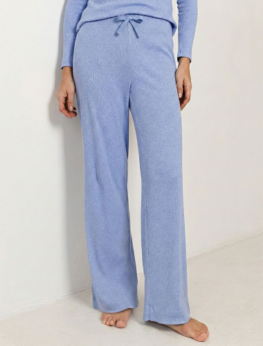 Прямые брюки с поясом на резинке из фактурного трикотажа в рубчик D44.161 голубой меланж