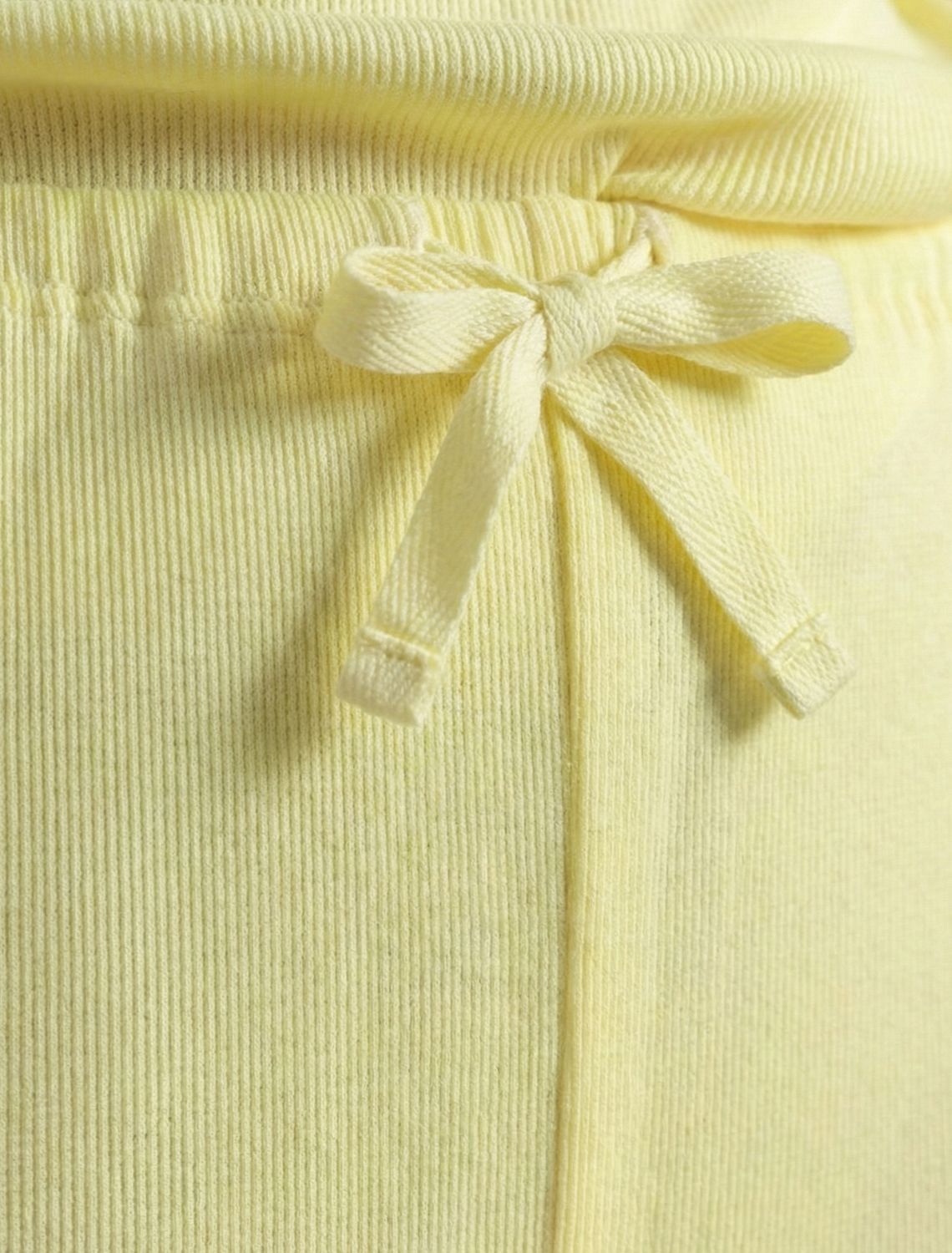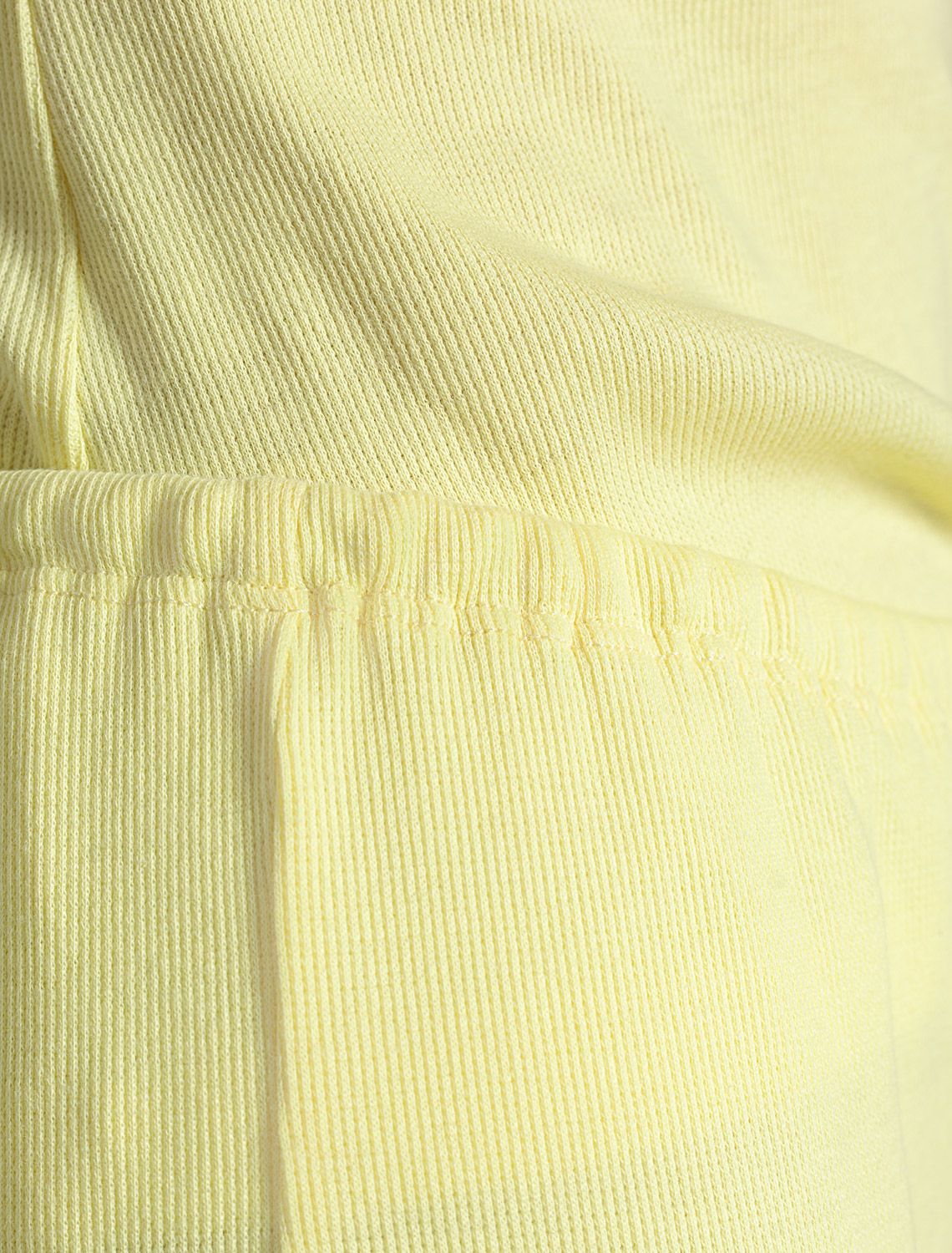 Прямые брюки лимонного цвета с поясом на тонкой резинке из фактурного трикотажа в рубчик созданы для вашего ежедневного комфорта. Особенность полотна - трикотаж кашкорсе удивительной мягкости, намного мягче стандартных вариантов, подходящий для расслабленных домашних и пижамных образов. Хлопок обеспечивает максимальный комфорт даже в течение длительного времени и позволяет коже дышать, а эластан дарит безупречную посадку на различные типы фигуры, в том числе и большие размеры и позволяет свободно двигаться. Выбирая эти легкие штаны, вы получаете удобство и стиль в одном решении, ведь домашние и повседневные задачи будут проходить с максимальным комфортом. Красивые брюки сохранят свой внешний вид даже при активной эксплуатации, ткань не теряет форму. Брюки подходят для создания уютного образа на каждый день, легко сочетаются с другими предметами гардероба для прогулок и уютных вечеров. Приятная рельефная фактура ткани и аккуратный дизайн создают баланс между стилем и удобством, что особенно важно при выборе повседневных брючек.