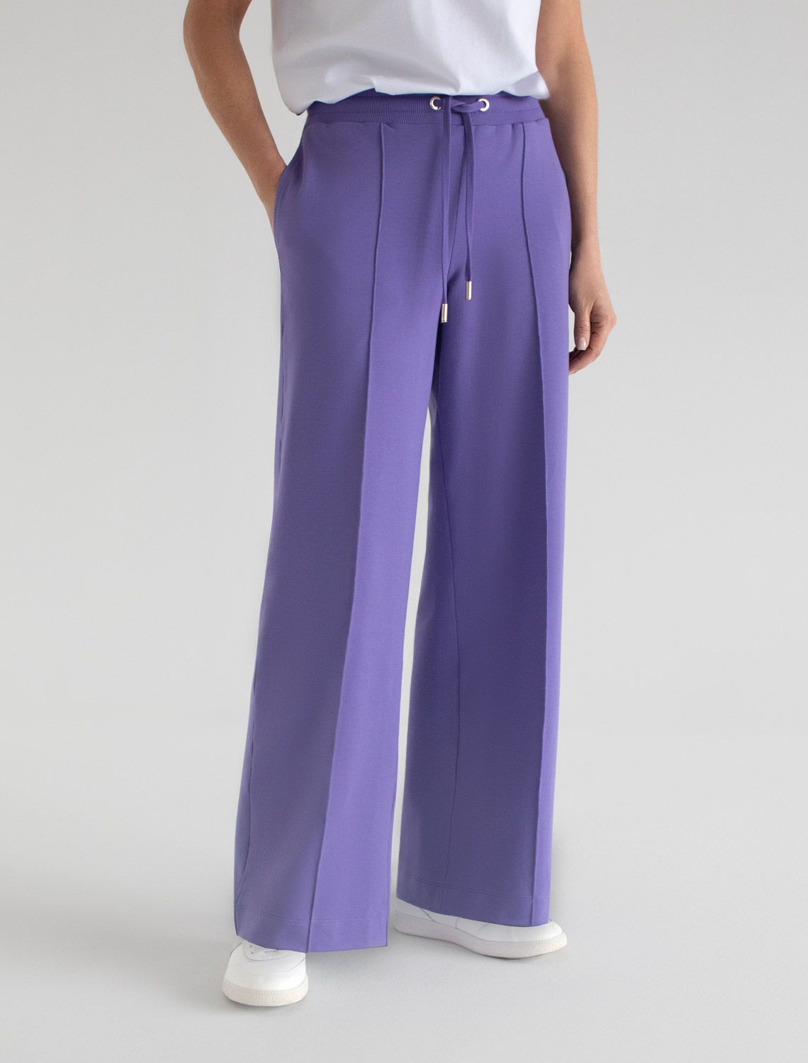 Состав: 95%Хлопок 5%ПУ Плотность:..показать 240 Г/м2Брюки лавандового цвета прямого кроя выполнены из премиального футера-двухнитки. Лаконичный силуэт поддерживают застроченные стрелки, зрительно вытягивающие силуэт. Удобный пояс на резинке регулируется хлопковым шнурком с золотистой фурнитурой. Наличие эластана в составе изделия гарантирует комфорт и долговечность изделия. Эластичный материал хорошо пропускает воздух, позволяя телу дышать, и легко тянется, не ограничивая движения.