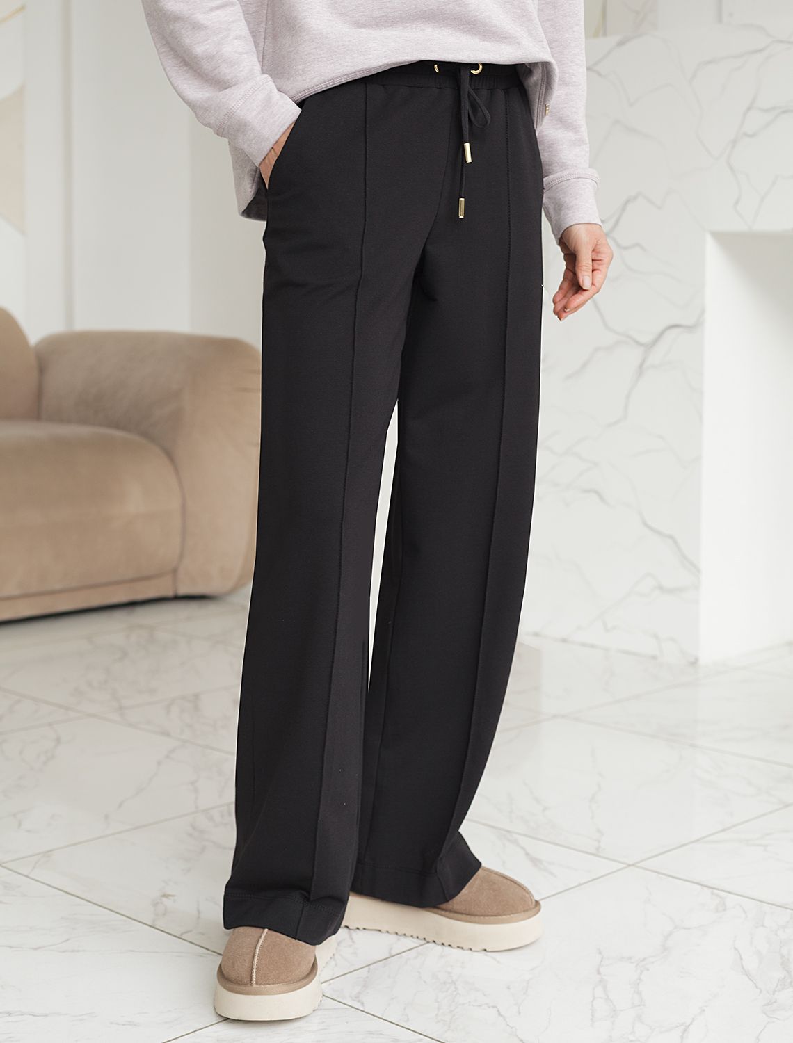 Стильный расклешенный крой добавляет изюминку в ваш образ. Эти брюки универсальны и могут стать отличным вариантом, как для занятий спортом, так и для повседневной носки. Они легко вписываются в повседневный образ, благодаря универсальности и элегантности. Достоинства фигуры подчеркиваются, а силуэт визуально вытягивается за счет кроя палаццо. Стильный расклешенный крой добавляет изюминку в ваш образ. В этих спортивных брюках вы будете чувствовать себя комфортно и уверенно, наслаждаясь каждым моментом дня. 240 Г/м2