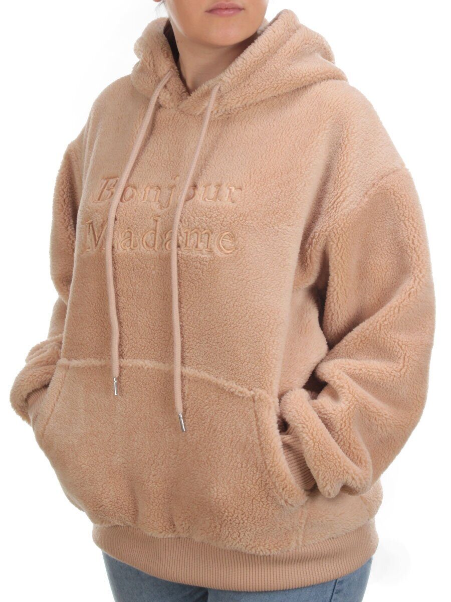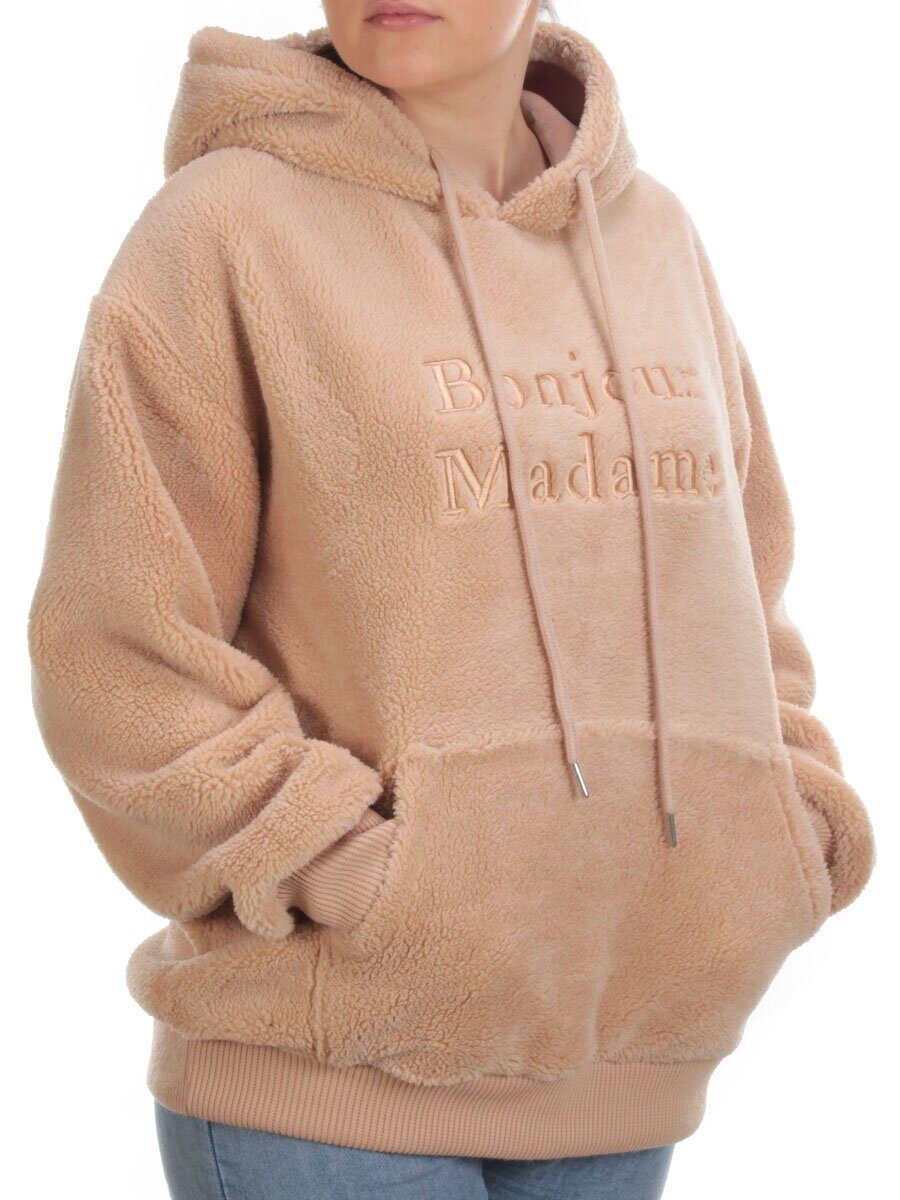 102 BEIGE Худи женское Тедди на флисе
