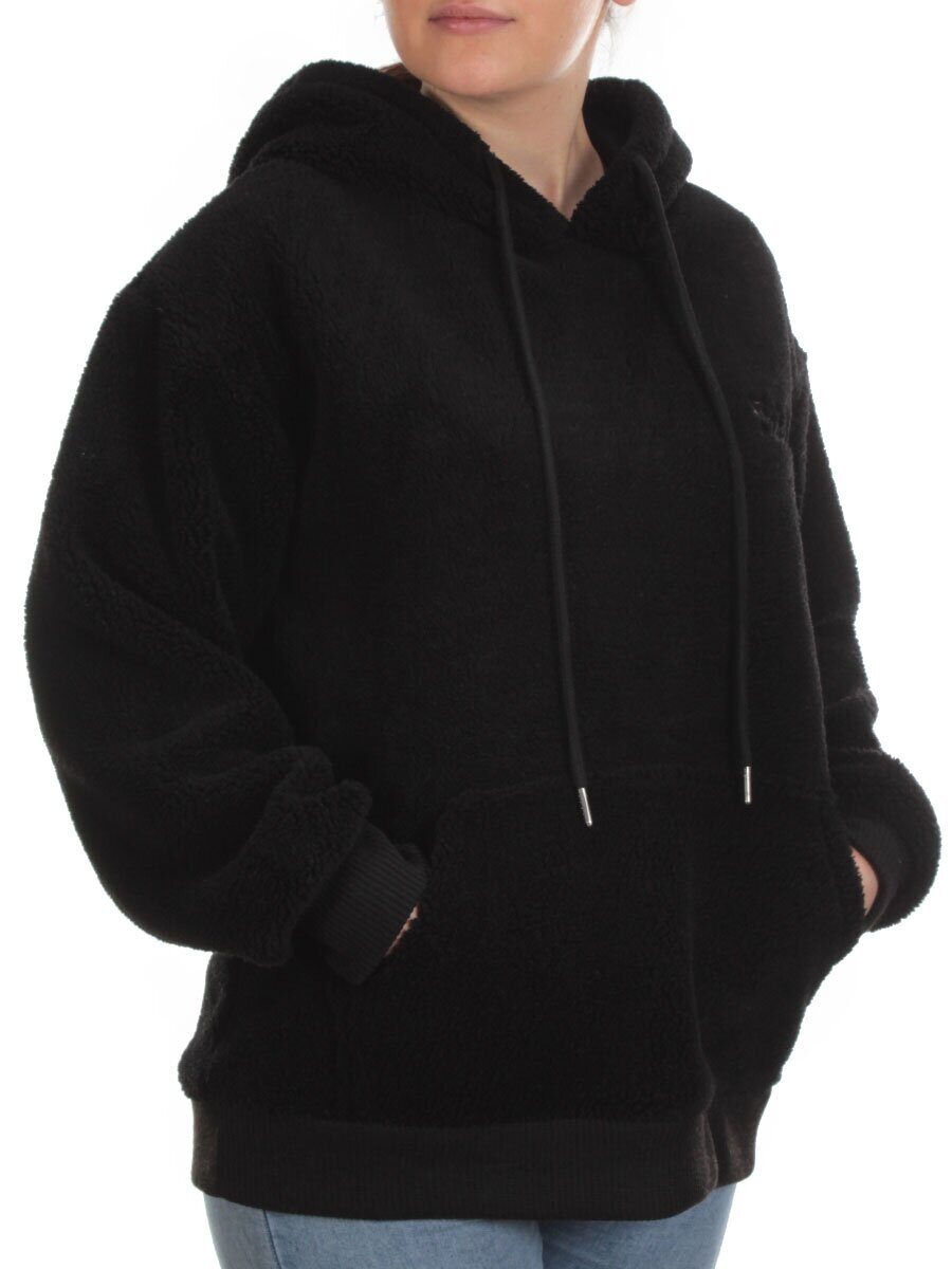 Трикотажные манжеты на рукавах и по низу толстовки.