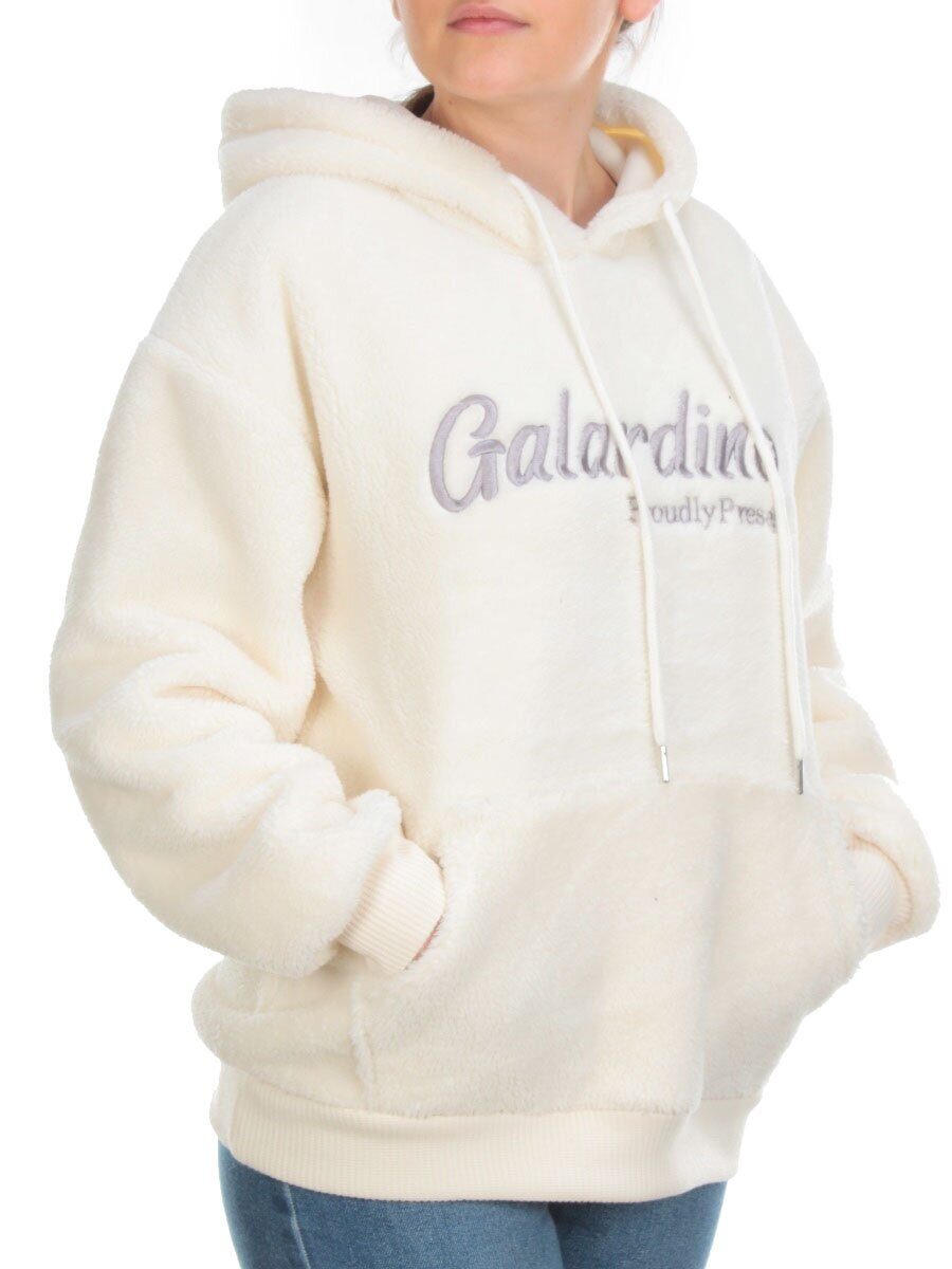 Трикотажные манжеты на рукавах и по низу толстовки.
