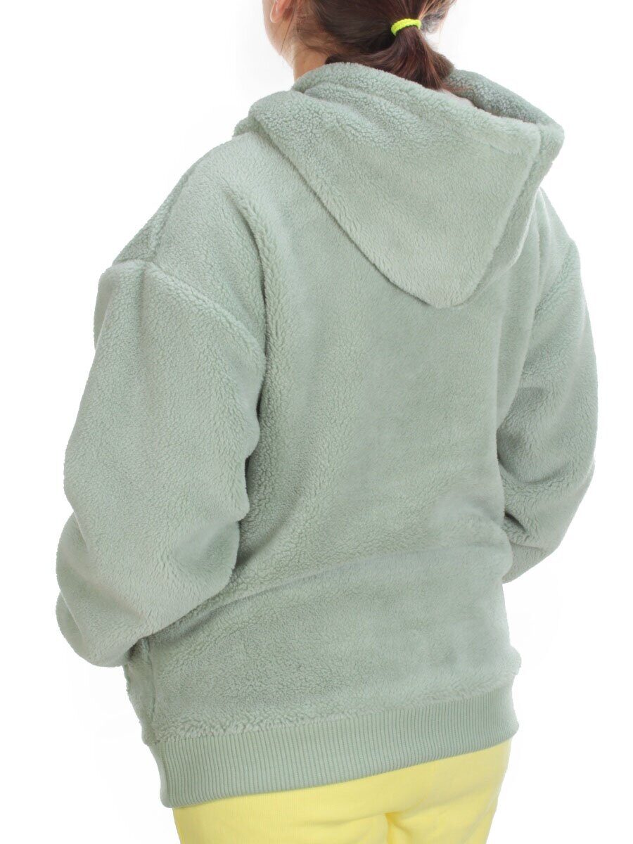 Трикотажные манжеты на рукавах и по низу толстовки.