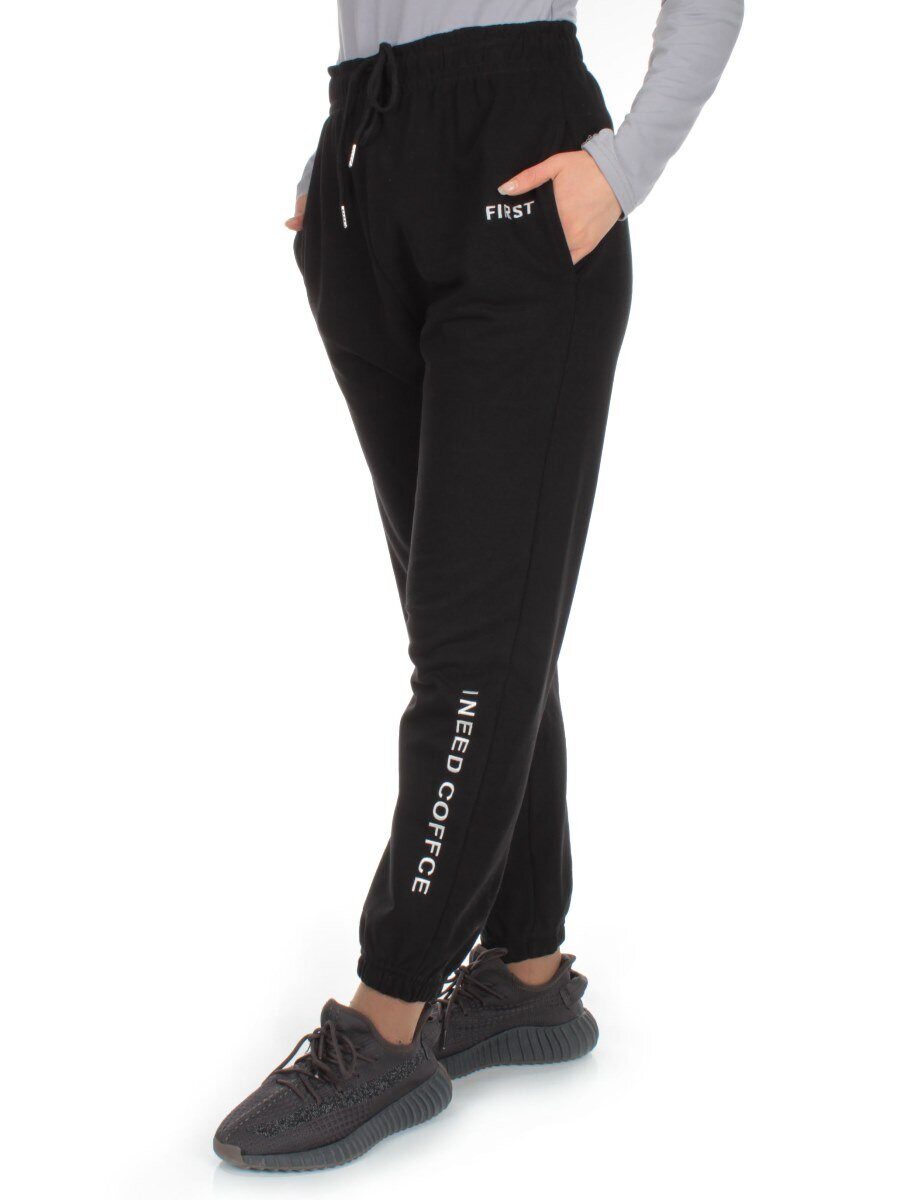 J-02 BLACK Брюки спортивные женские (85% хлопок, 15% полиэстер)