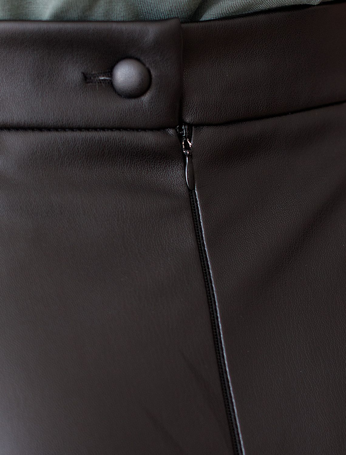 Стильное решение для смелых и уверенных образов. Юбка черного цвета, свободного кроя с плавные волнами на ткани, создает эффектный силуэт, подчеркивая женственность и динамику движения. Пояс стандартной ширины с обтачкой из мягкой изнанки обеспечивает комфорт при носке, не сковывая движений. Небольшой разрез до колена добавляет лёгкую дерзость и удобство при ходьбе. Качественная искусственная кожа придает юбке благородный блеск и износостойкость, сохраняя при этом легкость и эластичность. черный