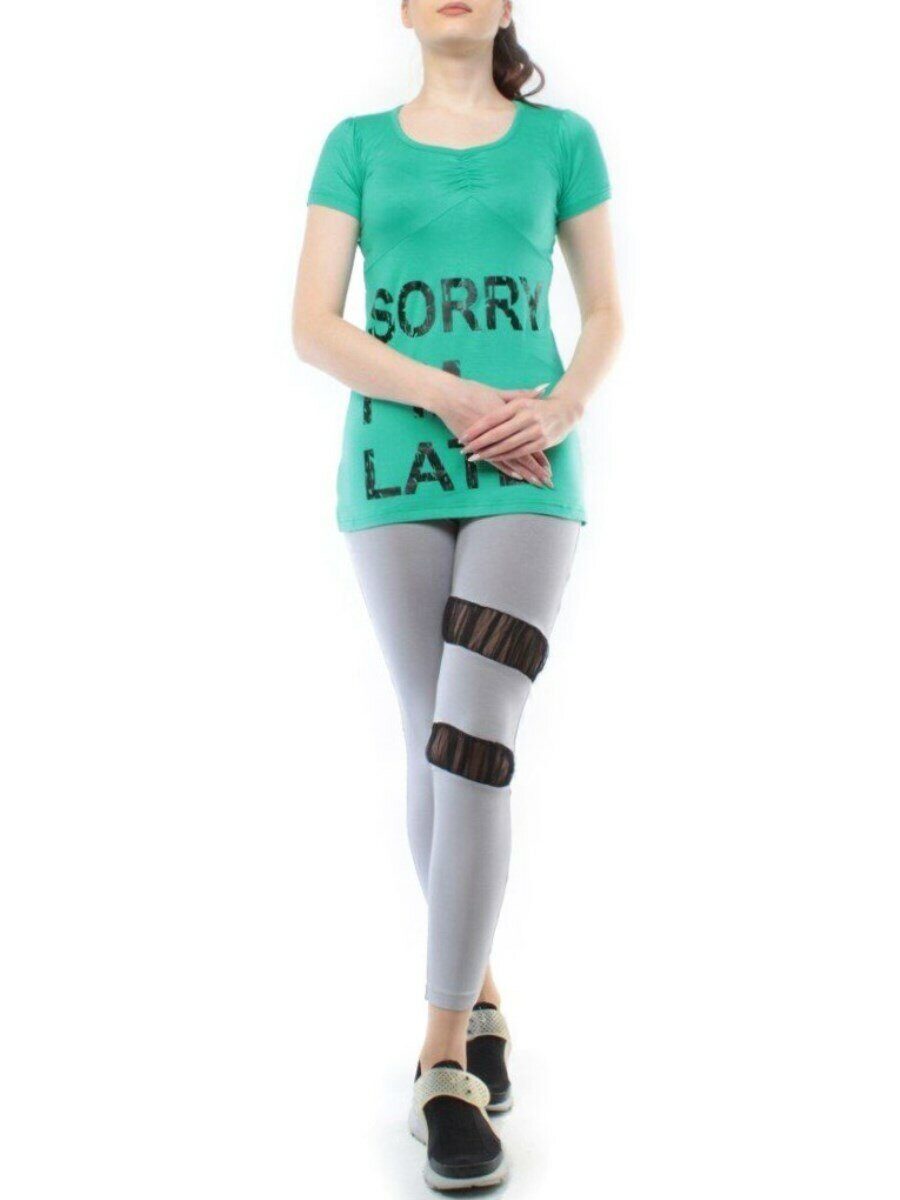 1215 GREEN/GRAY Спортивный костюм для фитнеса женский (90% вискоза, 10% лайкра)