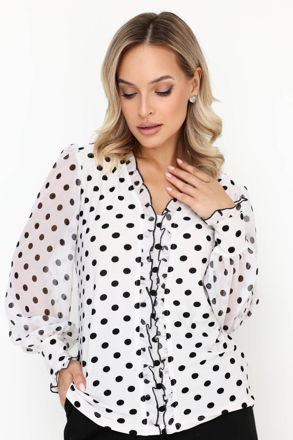 Блузка выполнена из трикотажного полотна, рукав длинный-шифон, манжет. Элегантно смотрится, легко стирается, не теряет и не меняет цвет. Так как в ткани используется большое количество вискозы, ткань дышащая и легко пропускает воздух, сохраняет форму и посадку даже после многочисленных стирок. Блуза представлена в ярких, современных и модных расцветках. Блузка станет неотъемлемой частью Вашего образа. Блуза прекрасно подходит для торжеств и повседневных мероприятий. Сочетайте блузу с брюками, юбками, и с любым типом обуви. Блузка бренда RISE - это стиль, качество и комфорт!