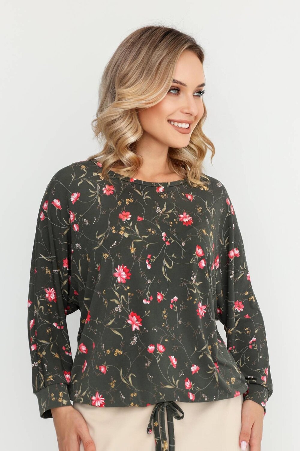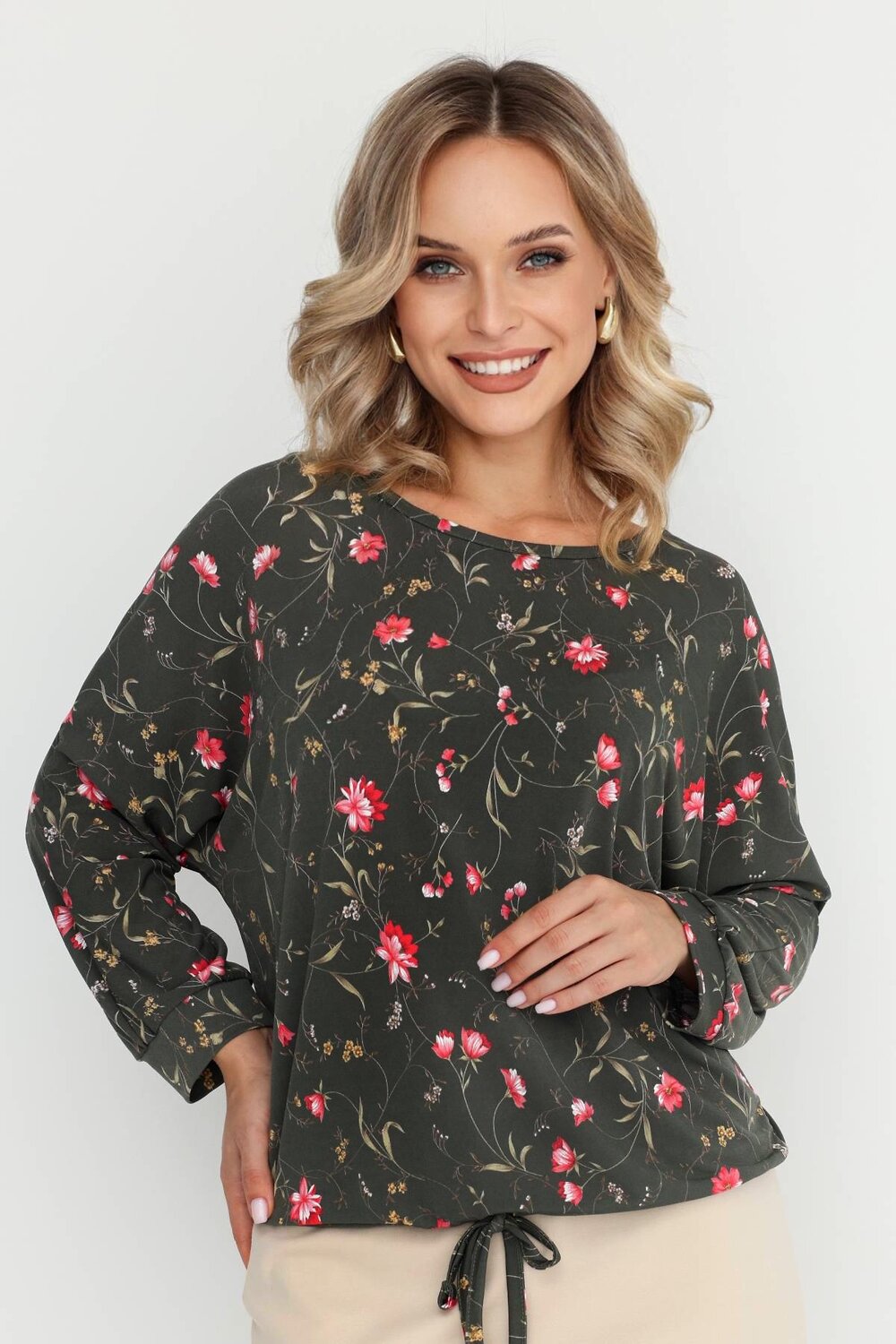 Блузка выполнена из трикотажного полотна. Округлый вырез, рукав "летучая мышь" на манжете рукав 3/4, кулиска по низу изделия. Элегантно смотрится, легко стирается, не теряет и не меняет цвет. Так как в ткани используется большое количество вискозы, ткань дышащая и легко пропускает воздух, сохраняет форму и посадку даже после многочисленных стирок. Блуза представлена в ярких, современных и модных расцветках. Блузка станет неотъемлемой частью Вашего образа. Блуза прекрасно подходит для торжеств и повседневных мероприятий. Сочетайте блузу с брюками, юбками, и с любым типом обуви.