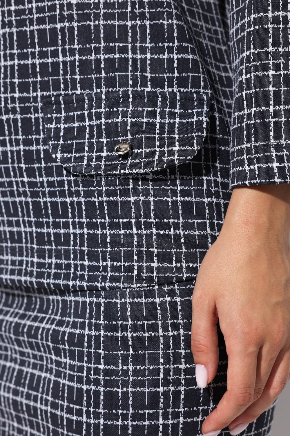 Блузка выполнена из плотного трикотажа в стиле. Воротник - подкройная лежачая стойка. Рукав-3/4, втачной на спущенной пройме. Спереди блузка украшена двумя клапанами с пуговицами - имитация карманов. Материал приятен к телу, мягко ложится по любой фигуре, хорошо тянется, не мнется, не сыплется. Прямой свободный крой позволяет легко комбинировать эту модель женской блузки с разными вариантами низа. Дополняйте брюками или юбками в зависимости от повода, носите заправленной или навыпуск. Благодаря длине и продуманному крою блузка зрительно вытягивает силуэт и создает привлекательный женственный образ для торжественного случая или повседневности. Комфортная посадка дарит уверенность и ощущение свободы.