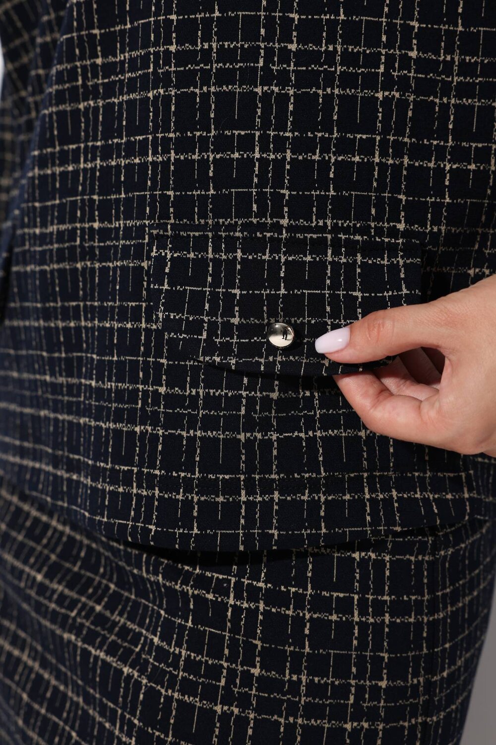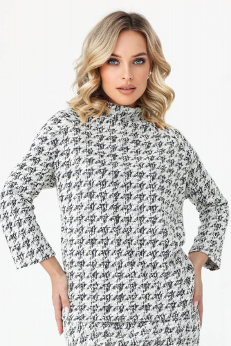Блузка выполнена из плотного трикотажа в стиле. Воротник - подкройная лежачая стойка. Рукав-3/4, втачной на спущенной пройме. Спереди блузка украшена двумя клапанами с пуговицами - имитация карманов. Материал приятен к телу, мягко ложится по любой фигуре, хорошо тянется, не мнется, не сыплется. Прямой свободный крой позволяет легко комбинировать эту модель женской блузки с разными вариантами низа. Дополняйте брюками или юбками в зависимости от повода, носите заправленной или навыпуск. Благодаря длине и продуманному крою блузка зрительно вытягивает силуэт и создает привлекательный женственный образ для торжественного случая или повседневности. Комфортная посадка дарит уверенность и ощущение свободы.