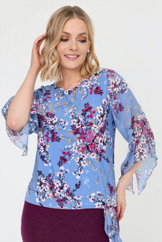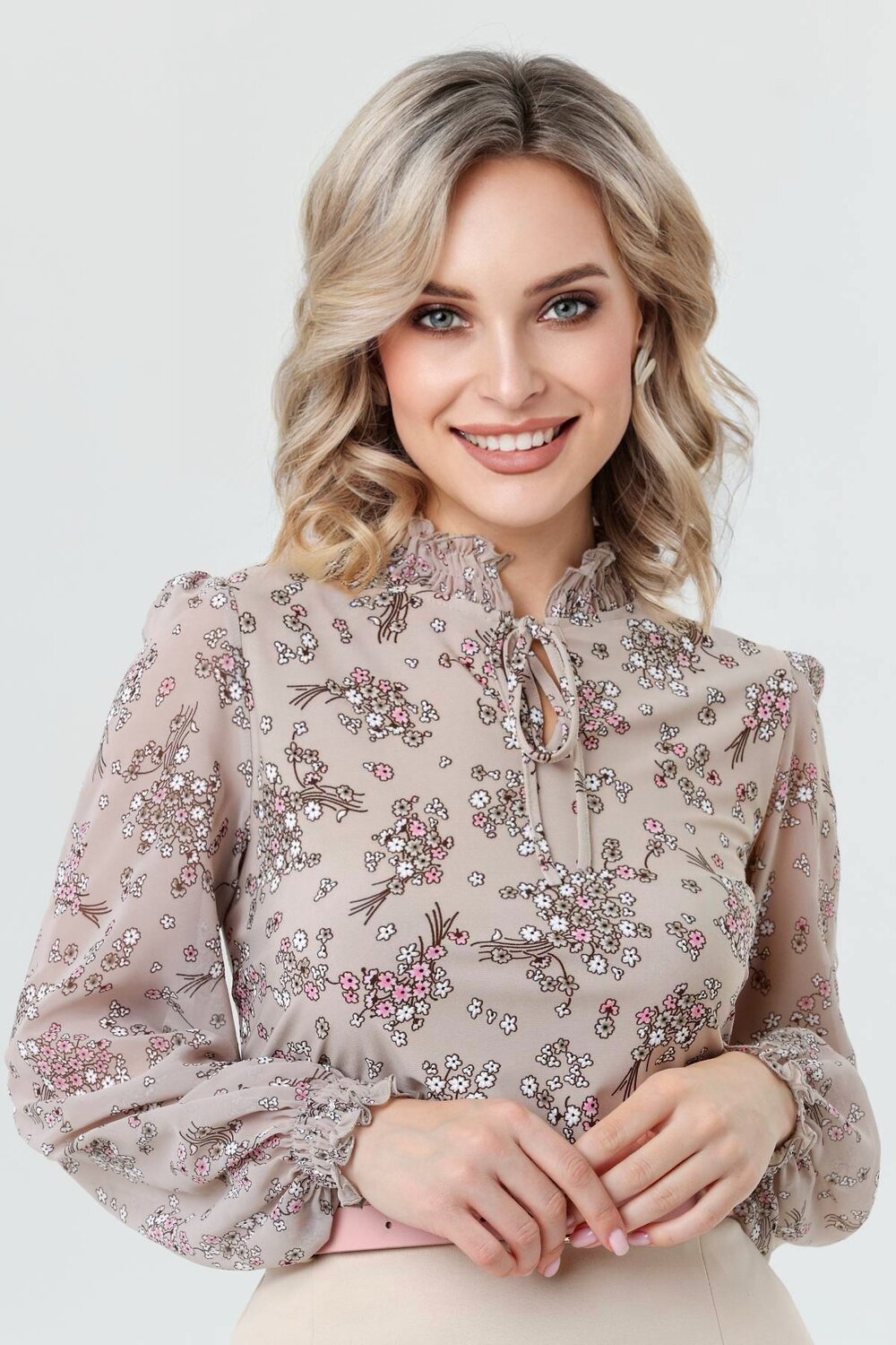 Блузка выполнена из трикотажного полотна, рукав - шифон, на манжете. Элегантно смотрится, легко стирается, не теряет и не меняет цвет. Рукава на широком, расстрочным ниткой-резинкой, манжете. Воротник-стойка расстроченная ниткой-резинкой, что обеспечивает мягкое прилегание к шее с зявязкой спереди. Блуза прямого покроя отлично садится на любой типа фигуры. Так как в ткани используется большое количество вискозы, ткань дышащая и легко пропускает воздух, сохраняет форму и посадку даже после многочисленных стирок. Блуза представлена в ярких, современных и модных расцветках. Блузка станет неотъемлимой частью Вашего образа. Блуза прекрасно подходит для торжеств и повседневных мероприятий. Сочетайте блузу с брюками, юбками, и с любым типом обуви. Блузка бренда RISE - это стиль, качество и комфорт!