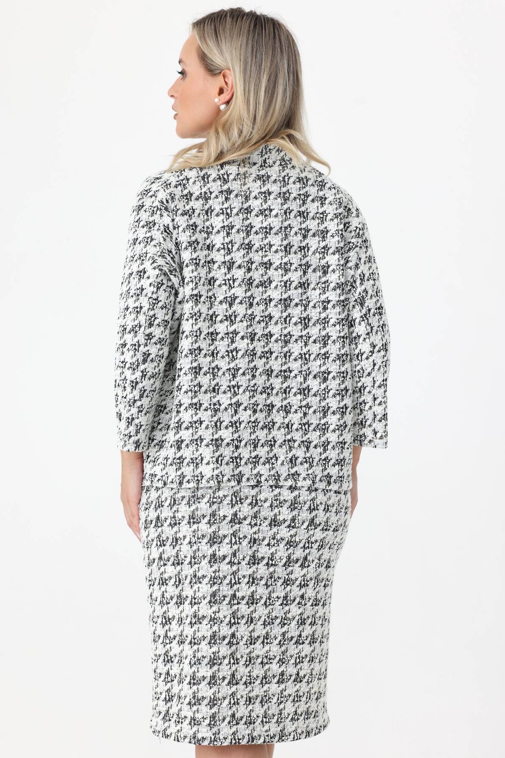 Блузка выполнена из буклированного трикотажа в стиле Шанель. Рукав-реглан. Материал приятен к телу, мягко ложится по любой фигуре, хорошо тянется, не мнется, не сыплется. Прямой свободный крой позволяет легко комбинировать эту модель женской блузки с разными вариантами низа. Дополняйте брюками или юбками в зависимости от повода, носите заправленной или навыпуск. Благодаря длине и продуманному крою блузка зрительно вытягивает силуэт и создает привлекательный женственный образ для торжественного случая или повседневности. Комфортная посадка дарит уверенность и ощущение свободы.